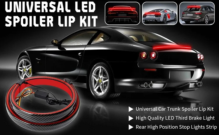 120 см 130 см Красочный светодиодный автомобильный спойлер Светильник Универсальный автомобильный сигнал поворота Стоп светильник Автомобильный багажник губа гонки Tun углеродное волокно