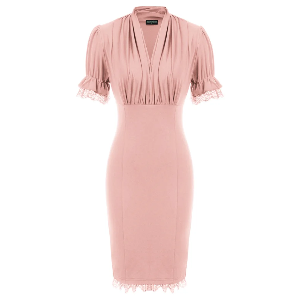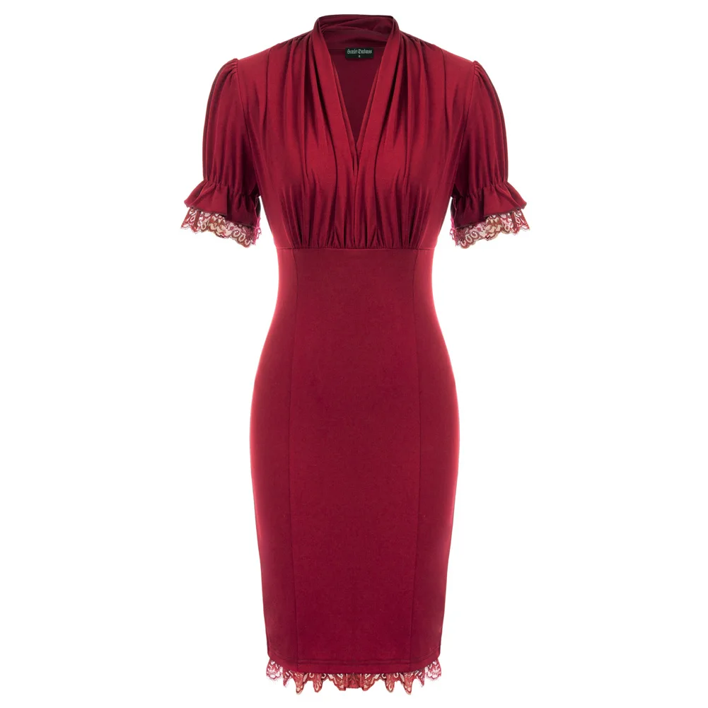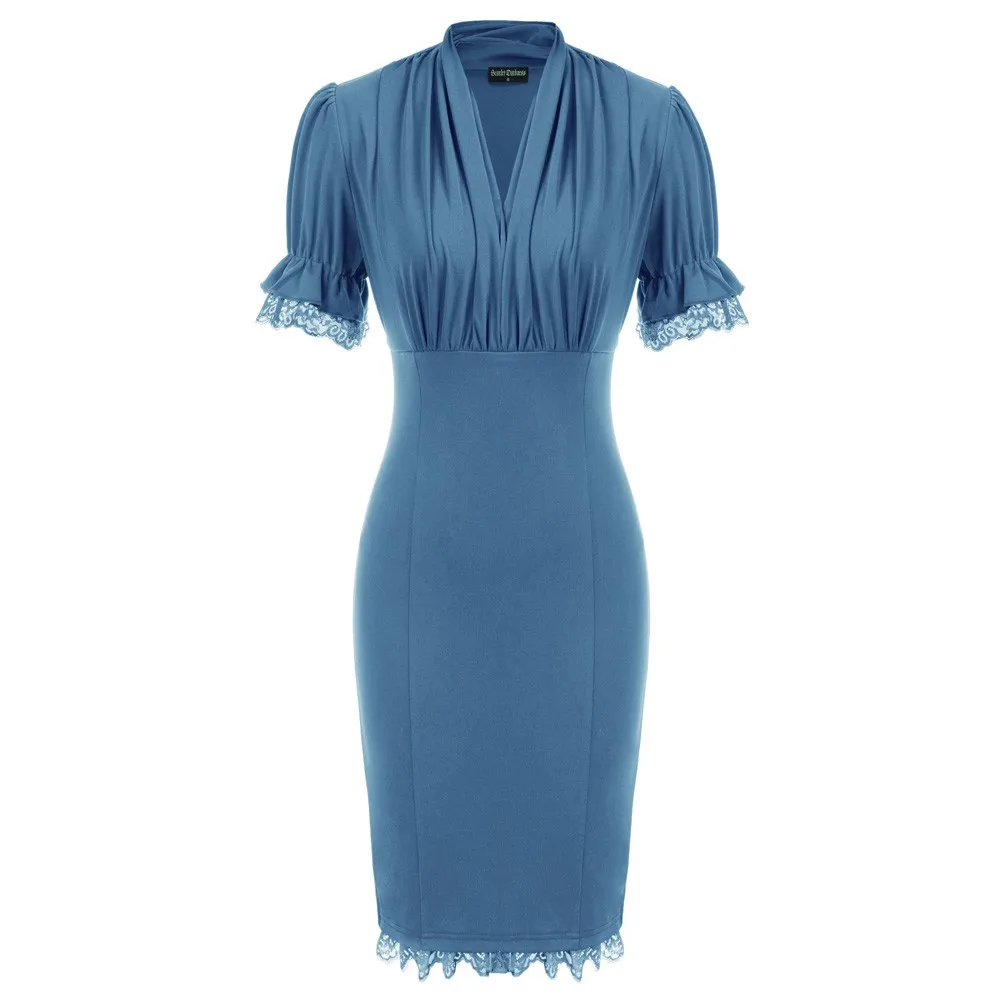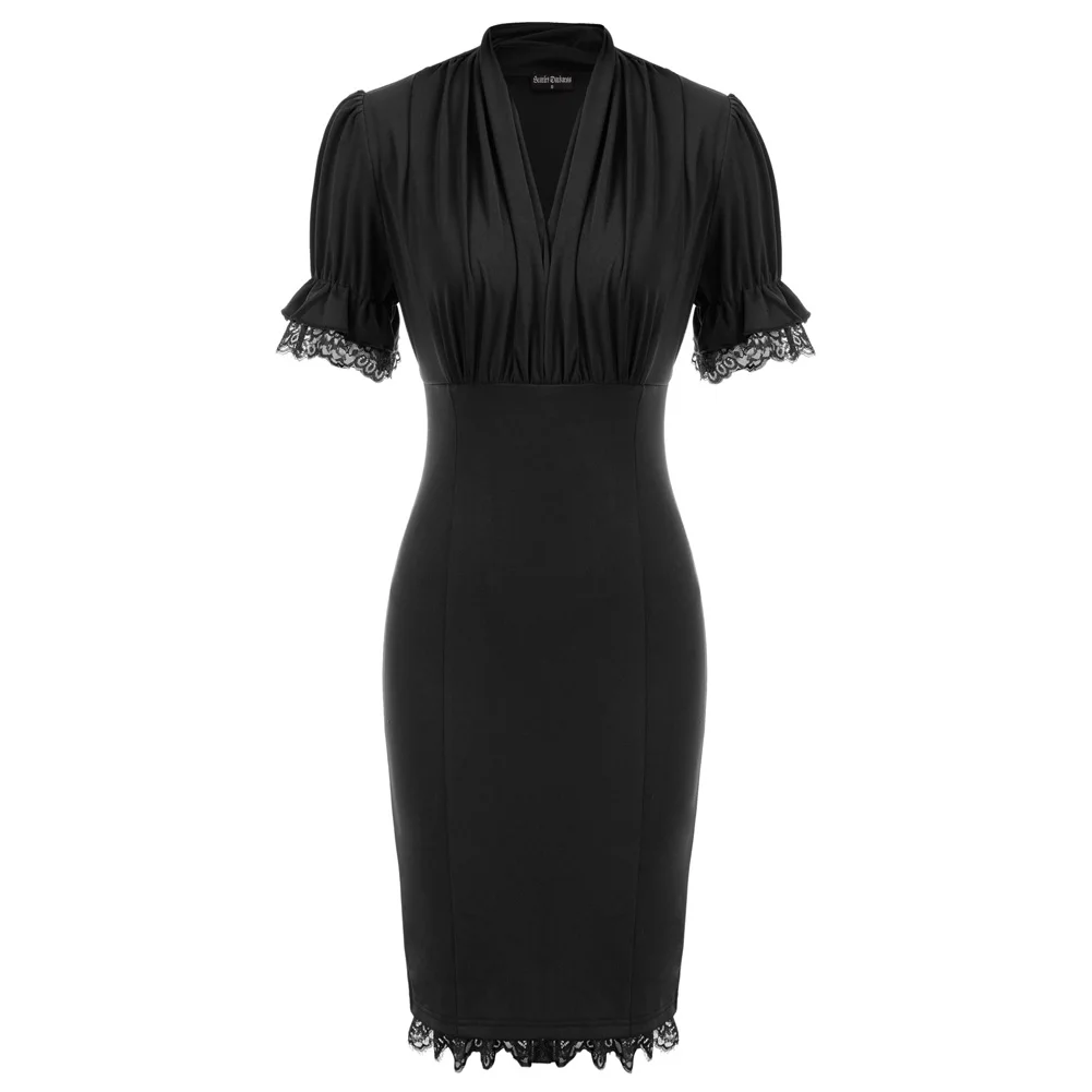 Женское Короткое облегающее платье в стиле стимпанк, летняя одежда, новинка 2022, винтажное вечернее офисное платье с V-образным вырезом и оборками на бедрах