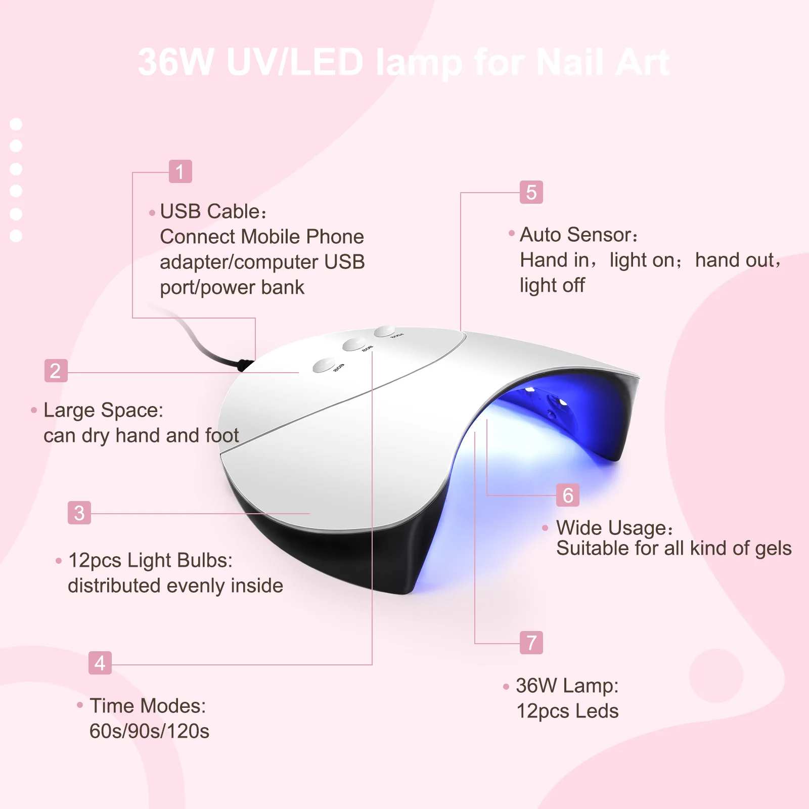 Аппарат для маникюра COSCELIA, светящаяся лампа с УФ-светодисветоди...