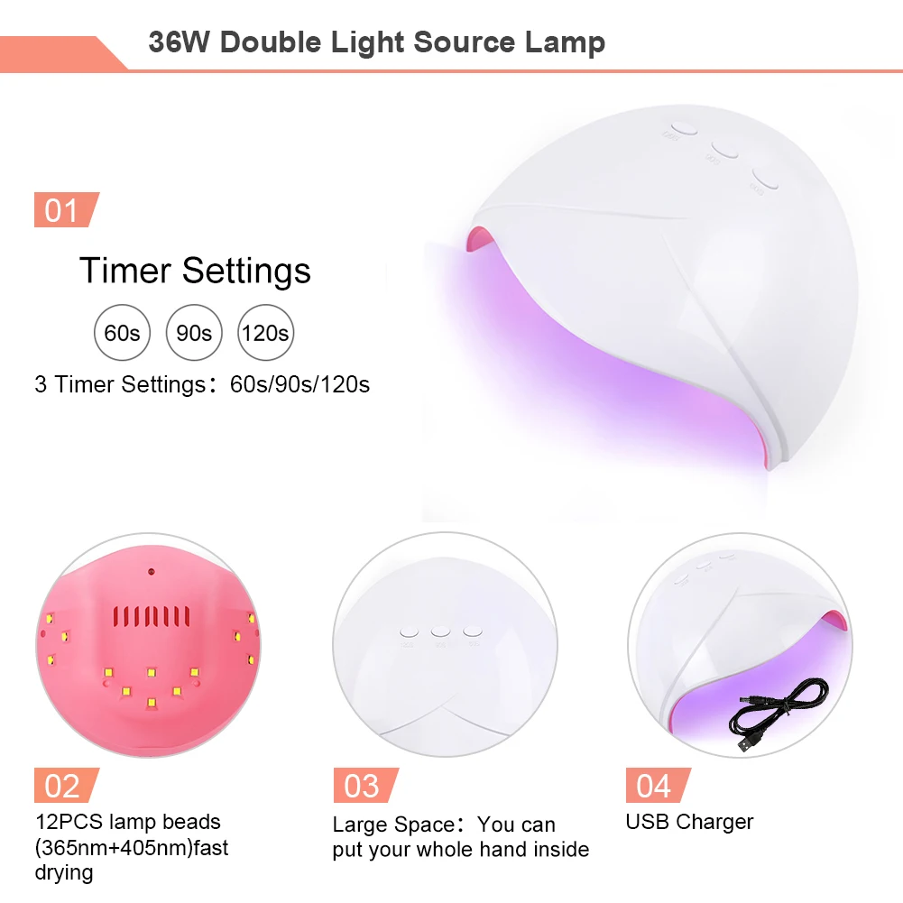 Набор Маникюрный для наращивания ногтей с УФ-лампой мощностью 36 Вт