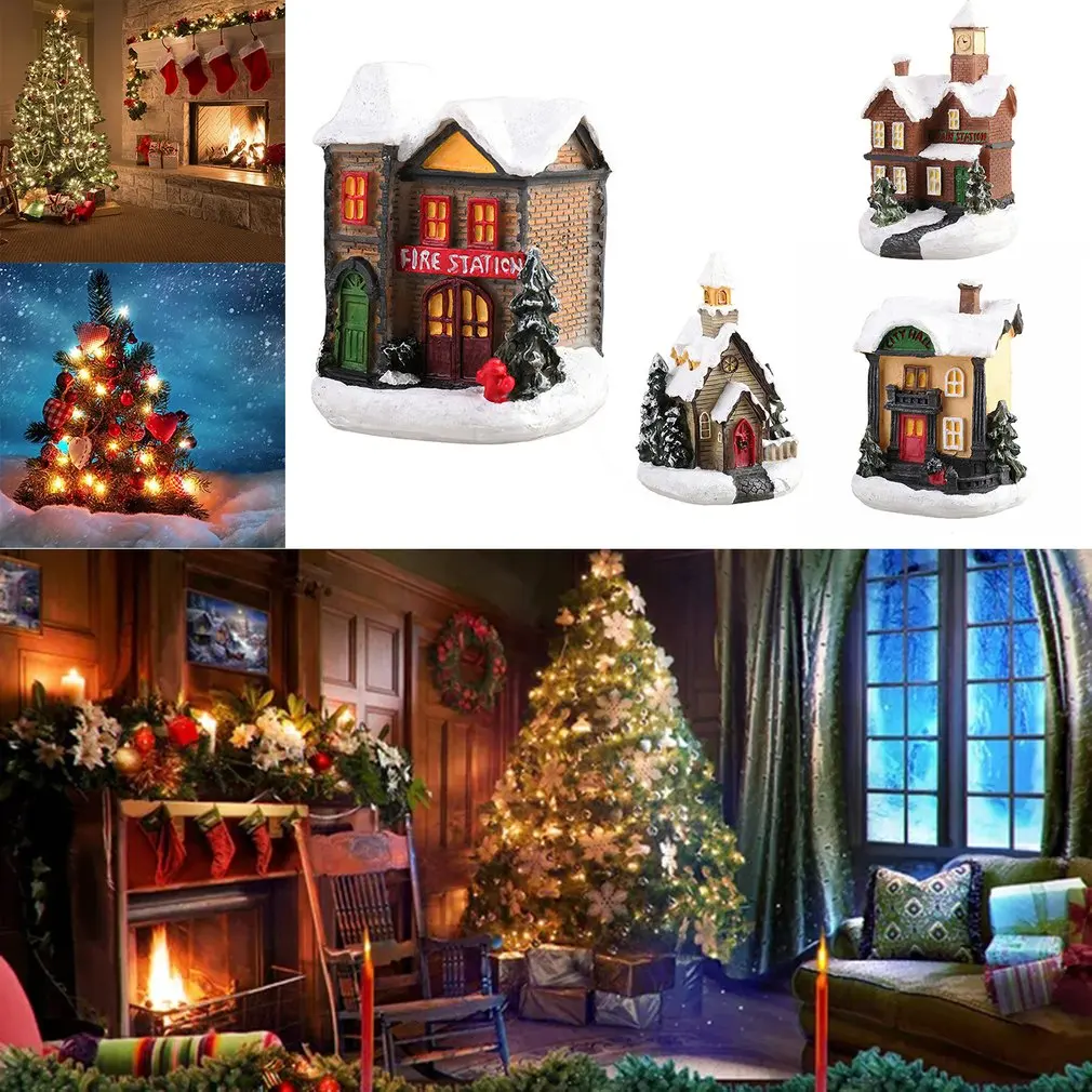 Рождественские украшения маленький дом микро пейзаж Рождественская деревенская сцена орнамент Рождественское украшение светящийся дом из смолы