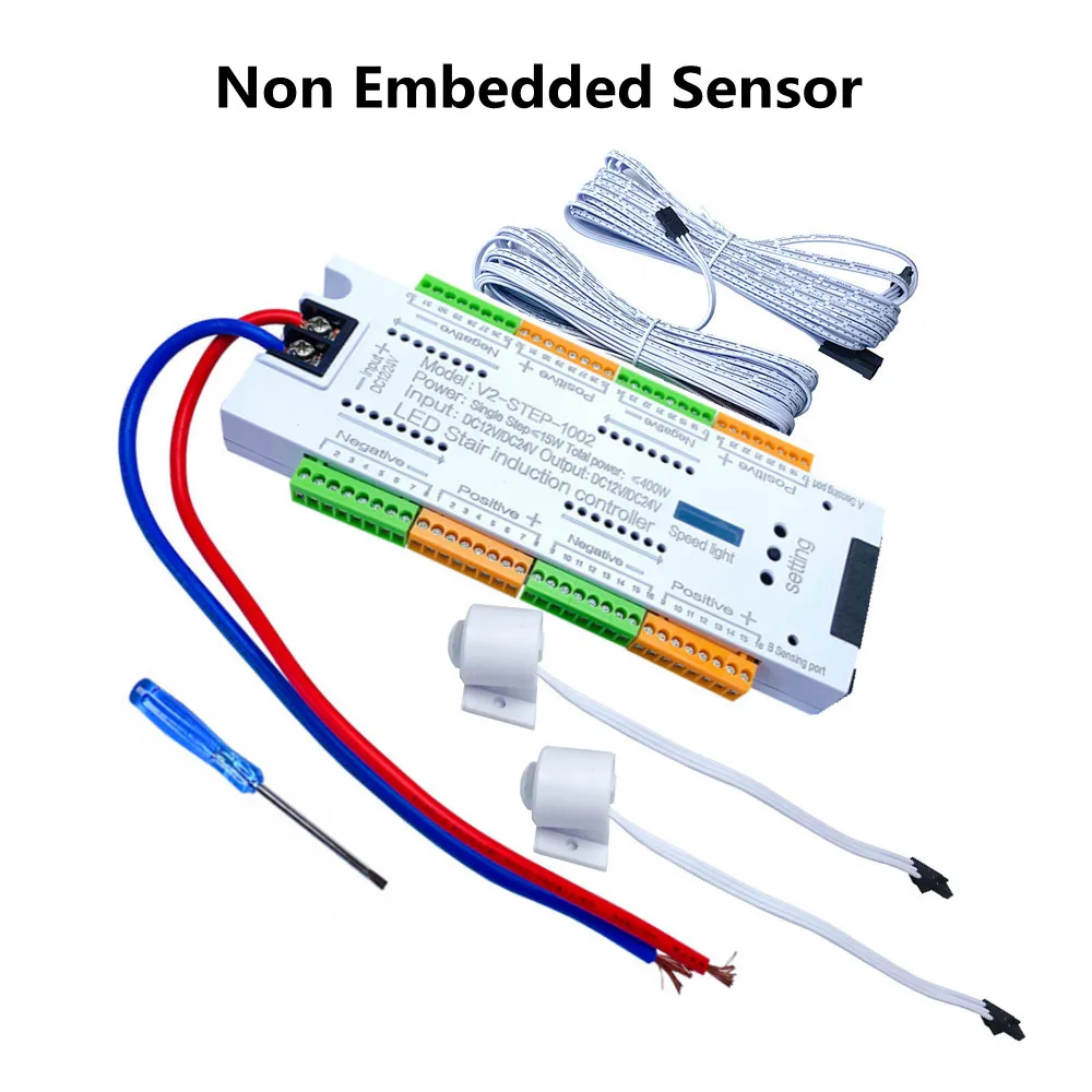 Контроллер лестницы с пассивным инфракрасным датчиком движения, постоянный ток 12 В, 24 В, 400 Вт, стандартный 32-канальный контроллер лестницы для светодиодной ленты 2835 3528 5050 COB