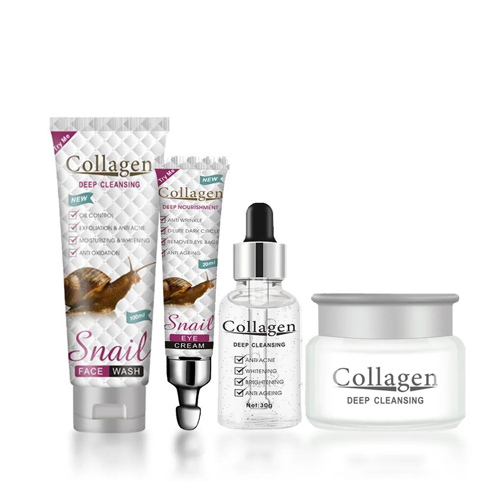 【 Лицо улитки Сыворотки 30 мл 】The улитка полный эффект раствора представляет собой экстракт из улитки слизи, и поверхность кожи непрерывная Плавная и прозрачный. Защищает чувствительную кожу и укрепляет экран защиты кожи. Способность восстанавливать кожу с большим количеством влаги. 【 Отбеливание с помощью улиток крем для лица 80 г 】 Этот Крем обогащен отбеливающими и увлажняющими ингредиентами, которые быстро проникают в кутикулы, для удаления меланина, улучшения тусклой, согревающей и неровной кожи и повышения ее отбеливающей способности. 【 Крем для глаз с улиточной слизью 20 г 】осветляет темные круги и морщины глаз, удаляет свободные радикалы вокруг глаз, улучшает защиту от мешков под глазами. 【 Лицо улитки мыть 100 г 】пена деликатная и богатая, мягко очищает излишки масла и грязи от лица.