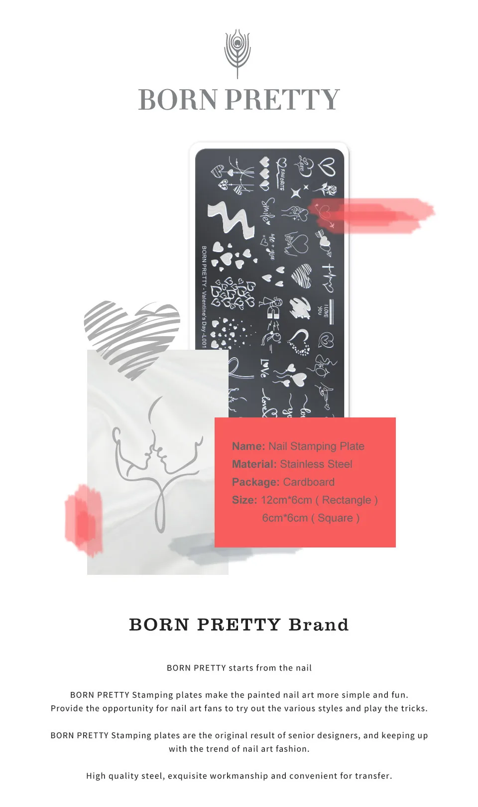 BORN PRETTY тема День Святого Валентина штамповочная пластина любовь Геометрия Бабочка отпечаток листика шаблон дизайн ногтей из нержавеющей стали