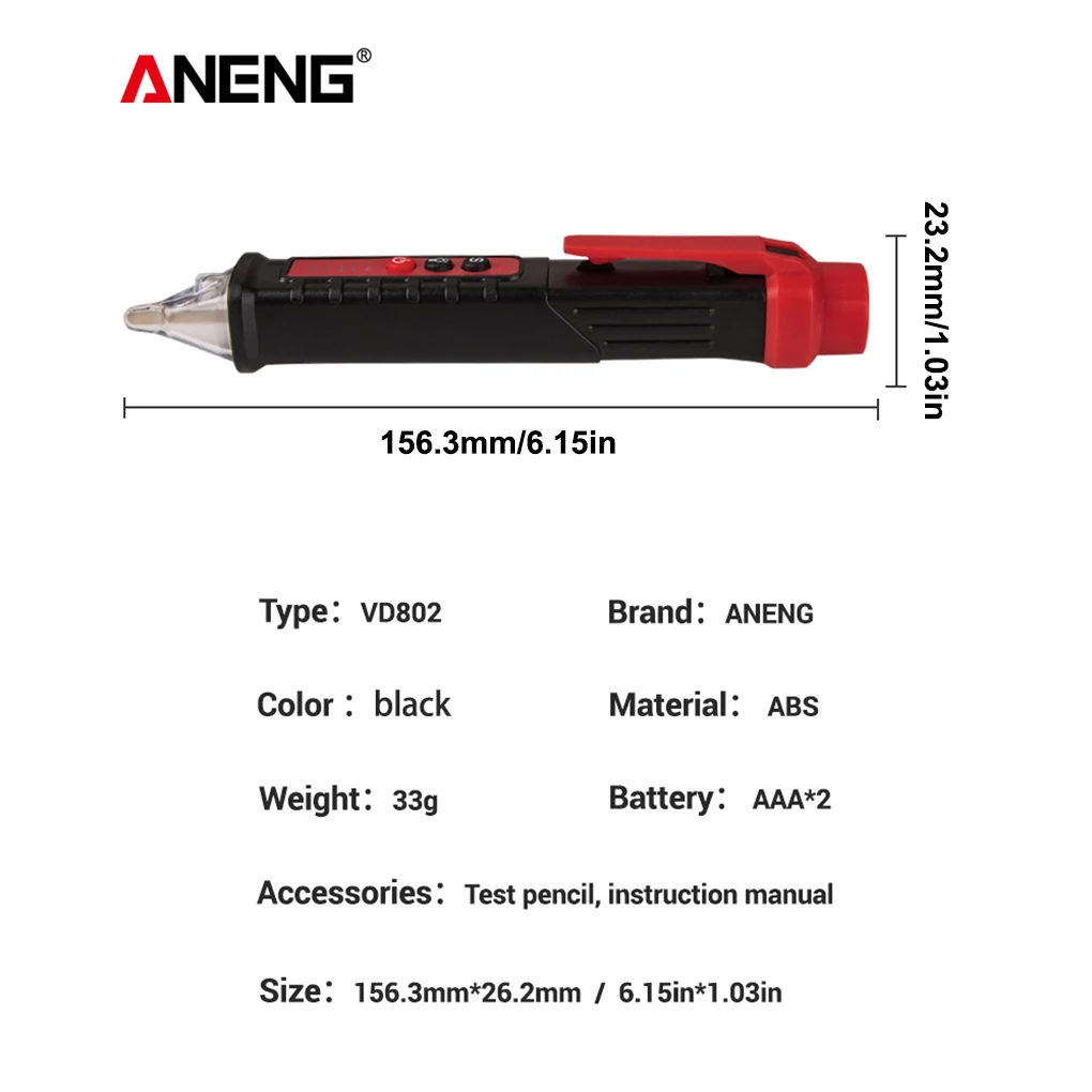 ANENG VD802 Бесконтактный детектор напряжения светодиодный вольтметр с индикатором портативный Карандаш автоотключение электрическая ручка с фонариком
