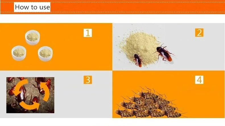 Упаковка: 20 шт.Особенности:1. Откройте посылка вдоль отверстия2. Равномерно присыпайте углы, зазоры, отверстия иМеста, где часто бывают тараканы, такие как шкафы и ящики.3. Лучший эффект использования в сухой среде, влажнойВ окружающей среде частицы будут помещены на картон для обеспеченияЭффект от медицины нормально функционирует.Боковая инфекция: неинфицированные тараканы инфицированыИнфекция человека. Или едят тараканов и получают инфекцию всего тела.Продольная инфекция: зараженный женский тараканРаспространение вируса на новое поколение через инкубационную оболочку, следующее поколениеНе сможет вылупиться.Меры предосторожности:1. Обратите внимание на безопасность при использовании, Носите защитные перчатки,Стирайте руки после использования.2. Не загрязняйте еду и воду во время использования.3. Избегайте потребления детьми4. Этот продукт токсичен для рыб и шелкопрядей. Использование должноУведомление5. Люди с аллергией не работают, побочные реакции происходят во время использованияОбратитесь за медицинской помощью.Примечание: Есть два упаковочных пакета с одинаковым эффектом, мы отправим их случайным образом.