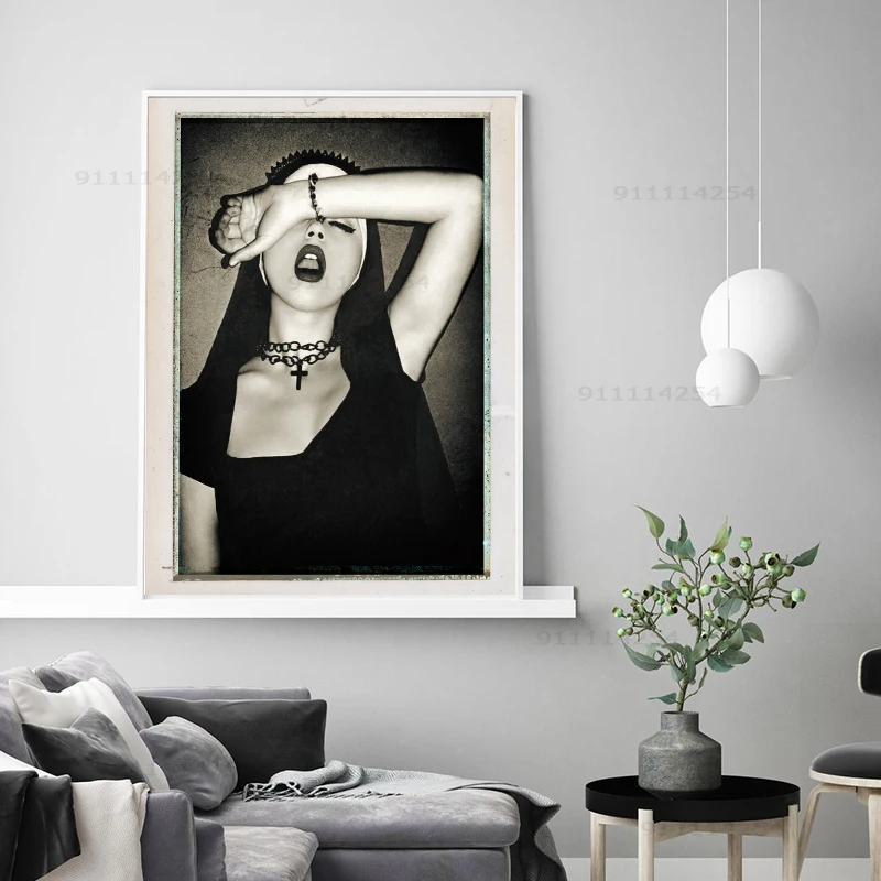 Черно-белый постер с изображением сексуальной монахини, винтажные художественные принты, горячие губы, крутая непослушная плохая девушка, Картина на холсте, Настенная картина, домашний декор