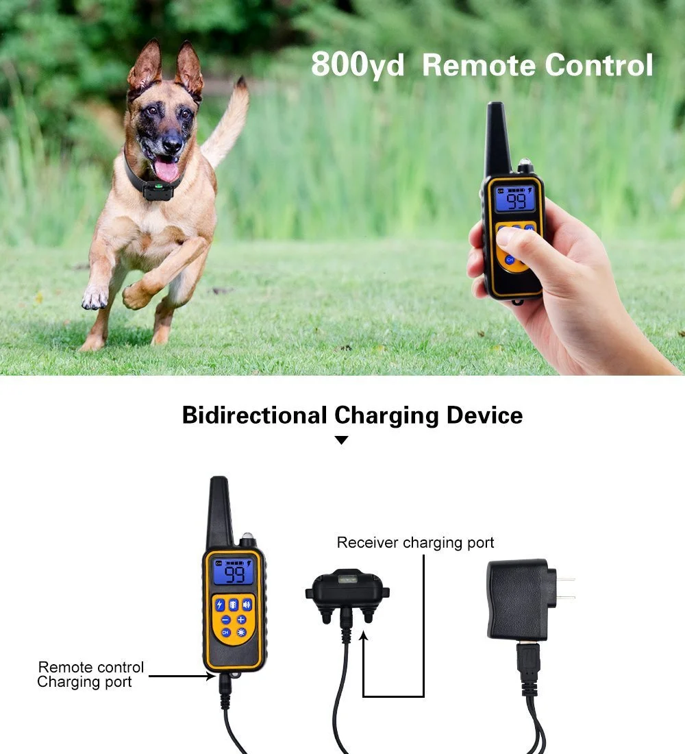 Электрический тренировочный ошейник для собак, с дистанционным управлением до 800 м, водонепроницаемый, перезаряжаемый с ЖК-дисплеем, универсальный размер, удар током, вибрация, звук