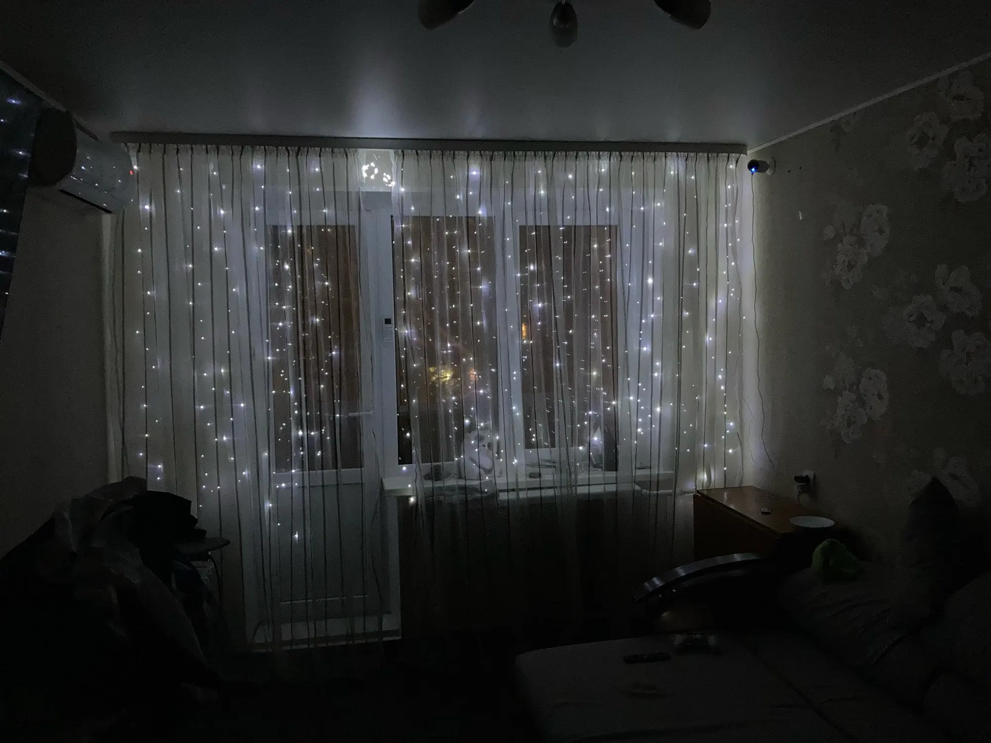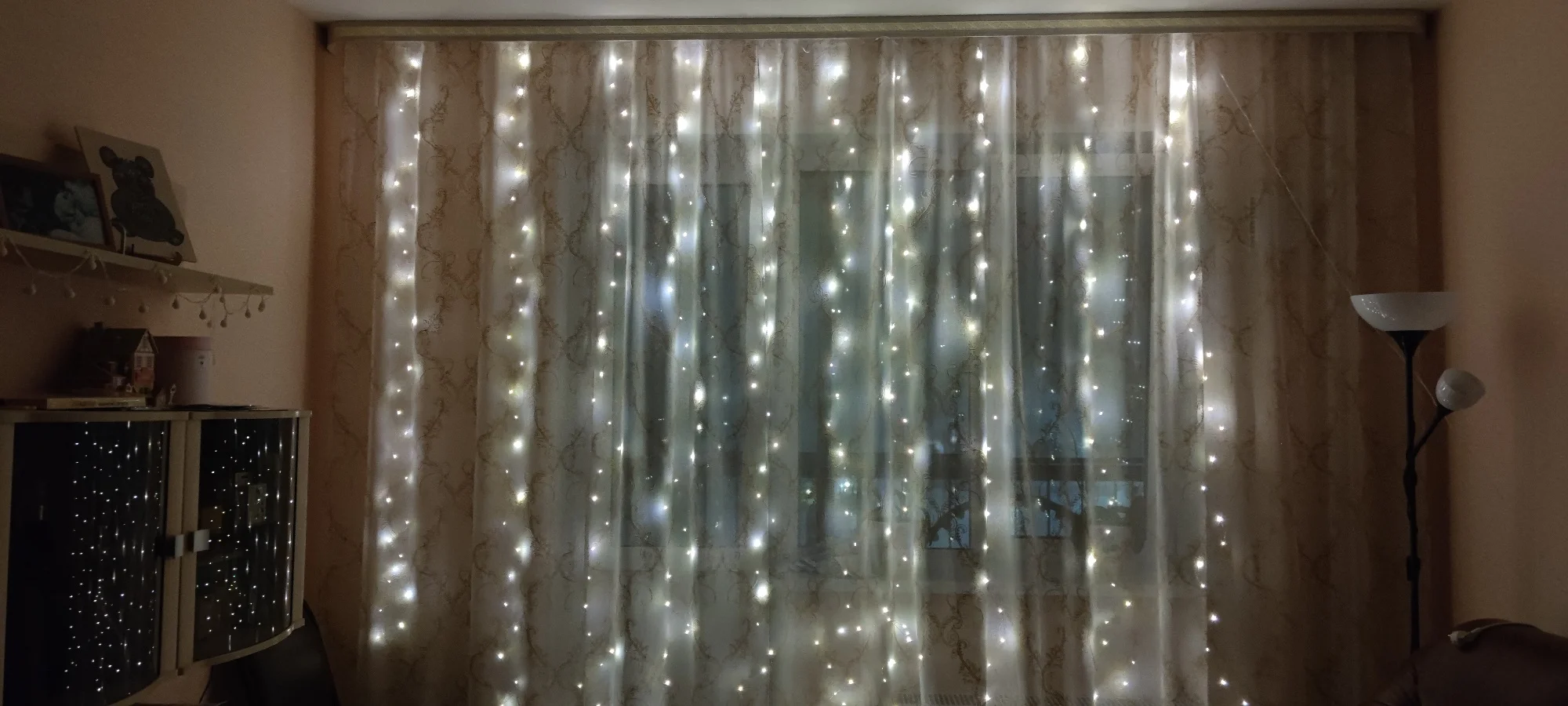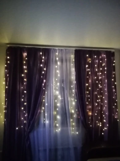 очень классная гирлянда штора. На пульте, нет необходимости вытаскивать каждый раз из розетки вилку, это удобно, потому что подключаю гирлянду в розетку под потолком (от кондера). Пультом регулируются режимы свечения, а также яркость. супер ! свет теплый, приятный. фото в самой малой и самой большой яркости света. И мне понравилось, как они свисают завитком, не стала выпрямлять, так гуще смотрится ) (и кошка снизу не грызет ). продавцу спасибо!!! доставка 2 недели, в Чувашию.