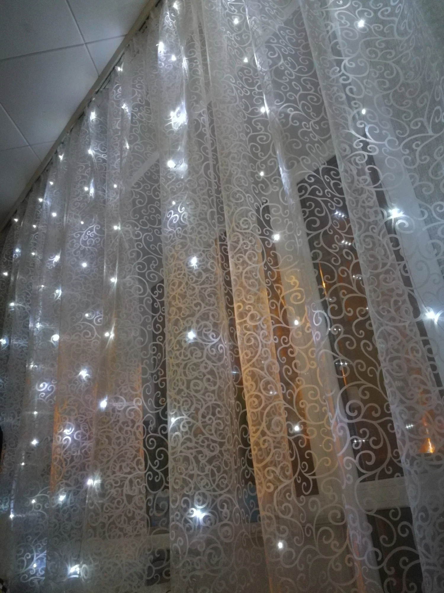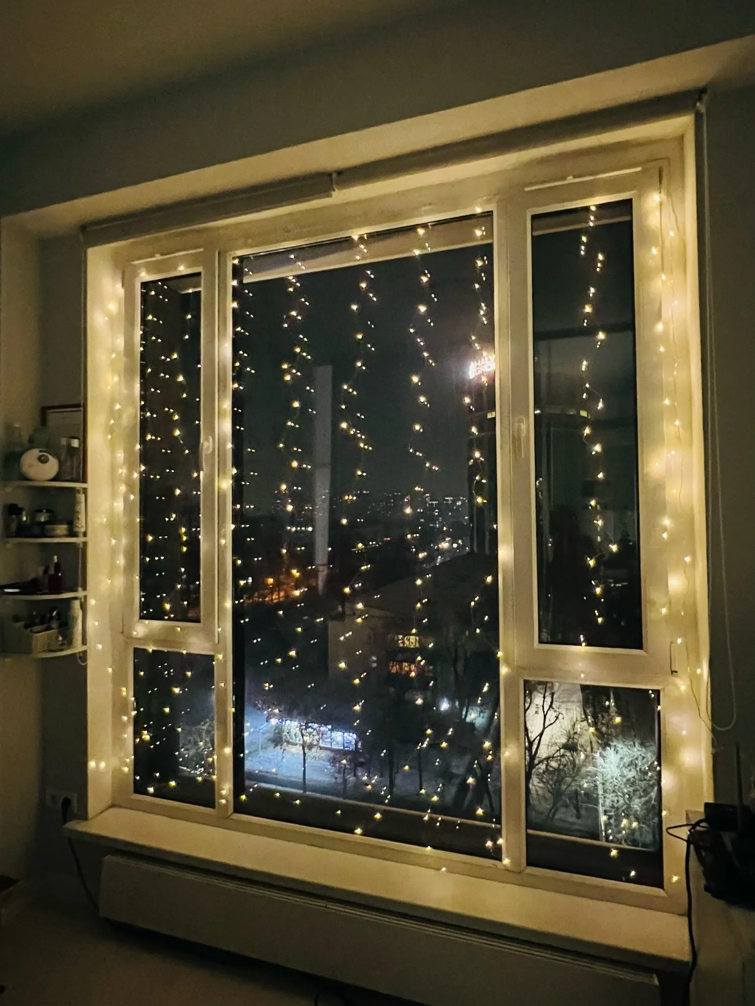 очень красивое получилось украшение на эркер. брала 6м длину. 19 колец проволочных на основе, пульт. брала теплый белый. боялась, что будет жёлтый. нет, цвет красивый (теплый белый). заказала уже поздно, писали что придет 31-01 января, а пришло 26 декабря. просто супер быстро.