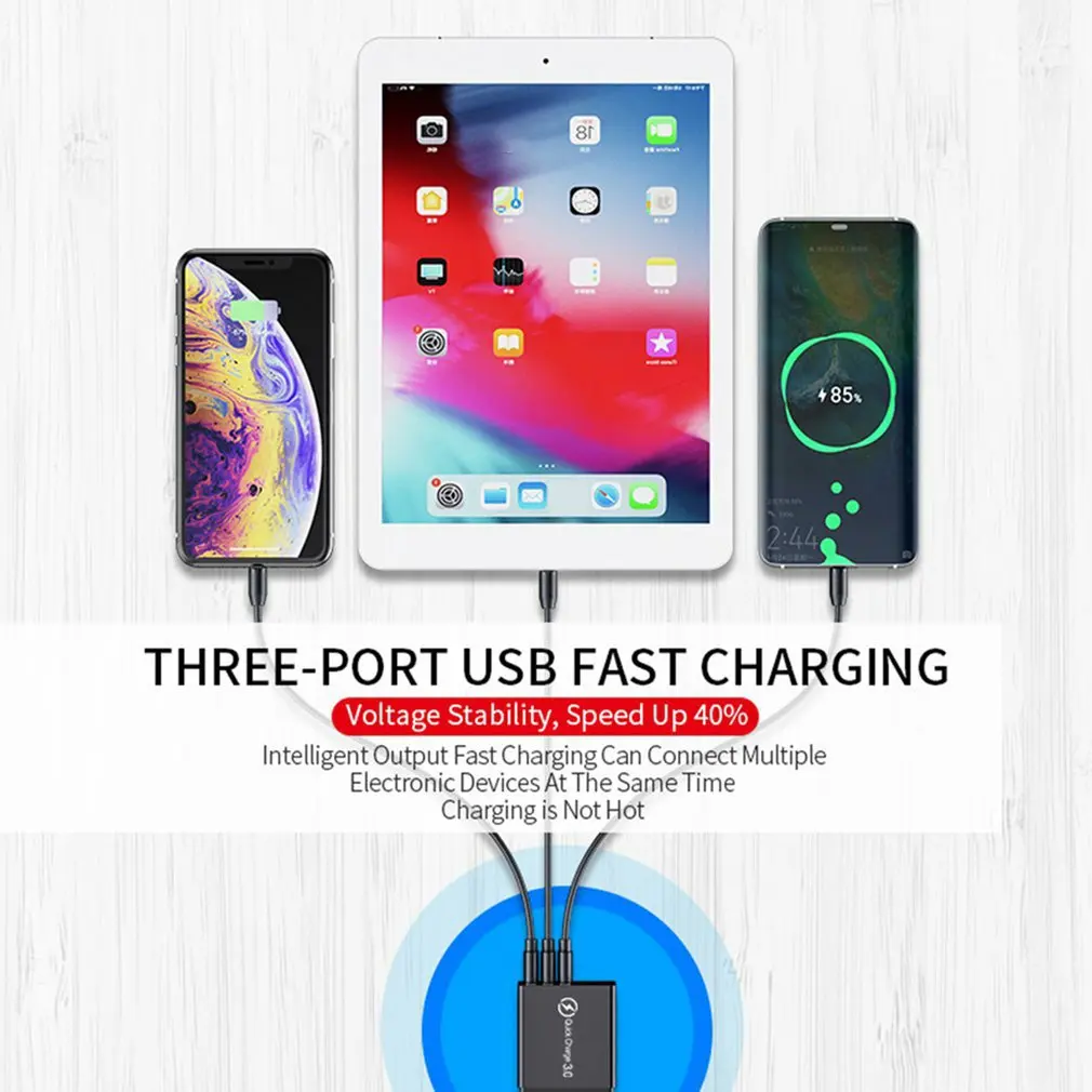 1. Улучшенная производительность, 3 выхода usb-разъема, общий ток 5 В/3,1 А, вход 100-240 В, что позволяет заряжать три мобильных устройства одновременно на высокой скорости.