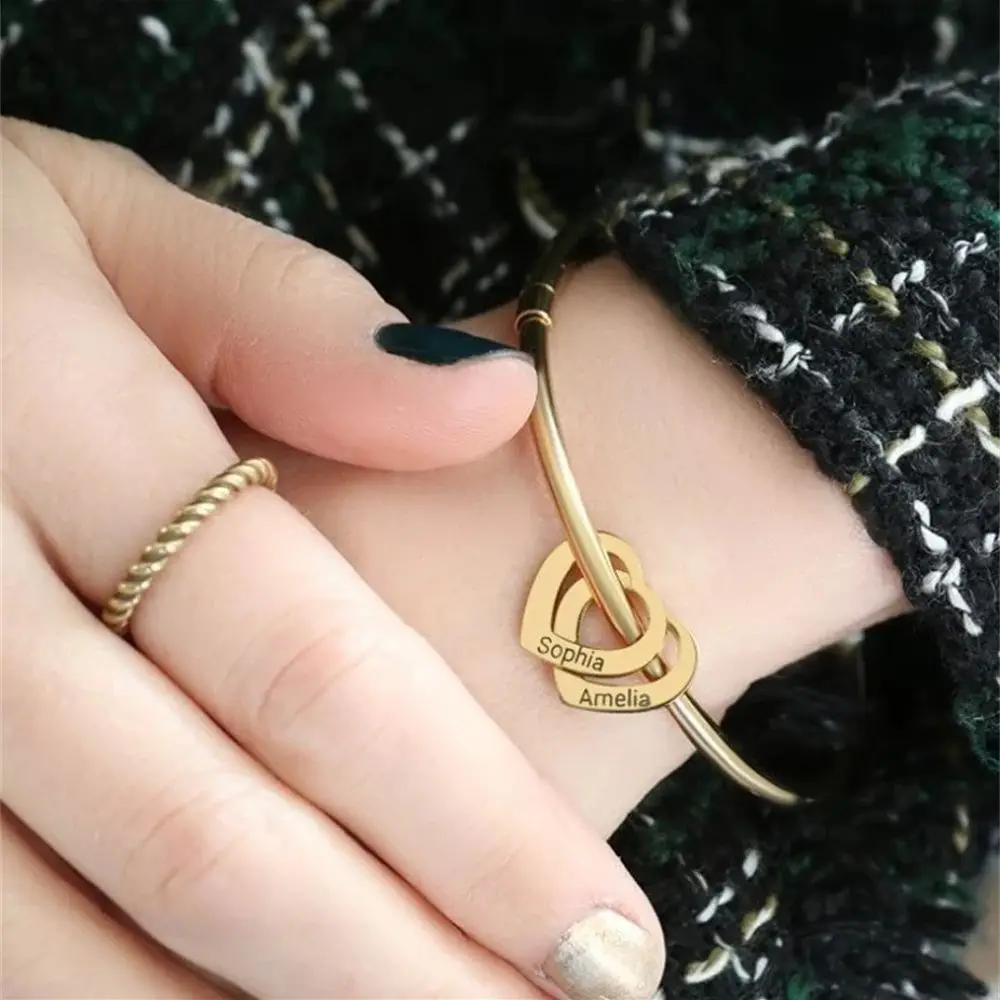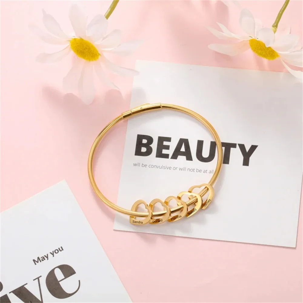 Женский браслет из нержавеющей стали с гравировкой и именем семьи