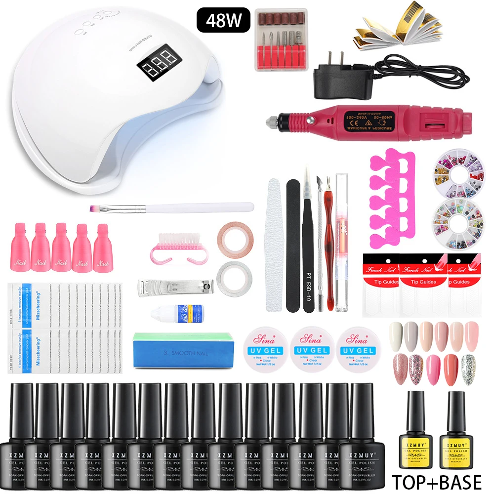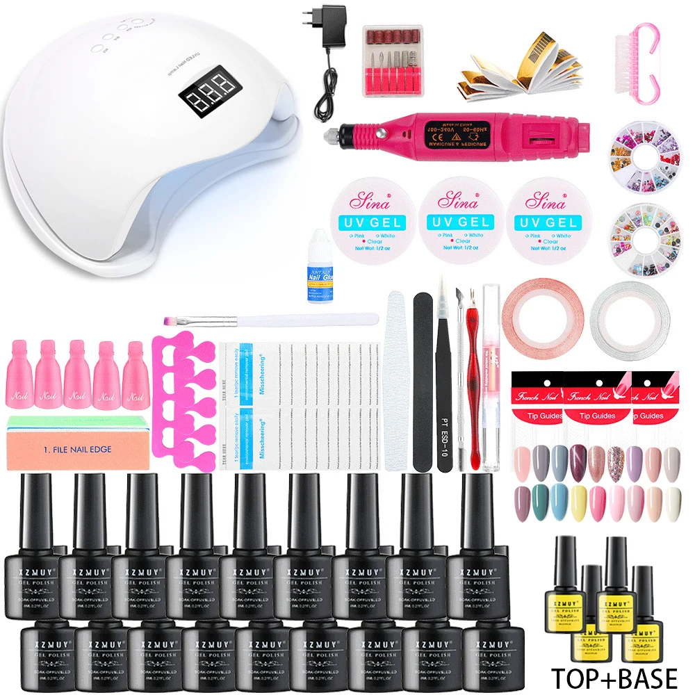 Набор для маникюра с фрезами и гель-лаками, аппарат для быстрого наращивания, Сушилка для ногтей, инструменты для нейл-арта, 52 шт.