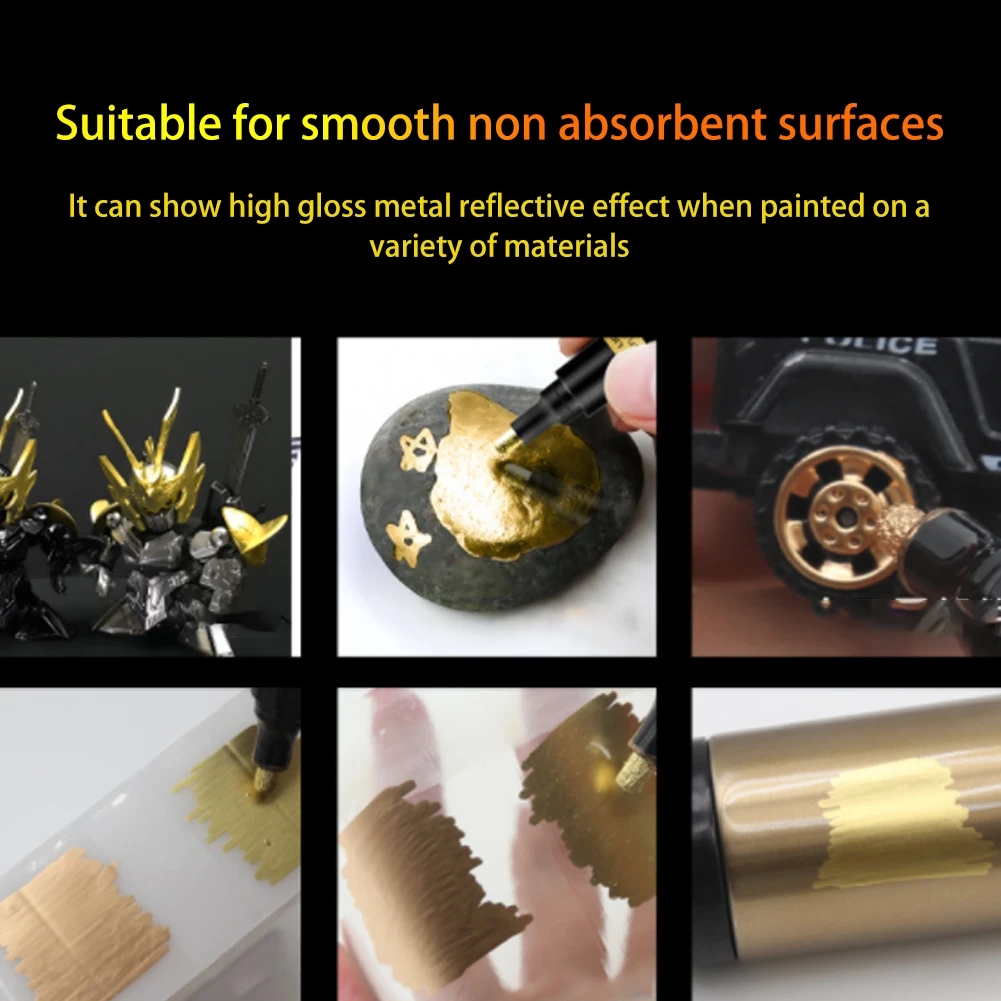 Светоотражающая ручка для краски, серебристая, золотистая, медная Перманентная ручка, водостойкие чернила, необработанные перья, зеркальный металлический эффект, красковые ручки ручной работы