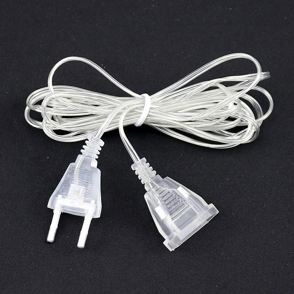 Прозрачный Удлинительный шнур питания, 220 В, 3 м, 5 м, шнур европейского стандарта, кабель переменного тока, светодиодсветодиодный лампа для рождества, Нового года, световая гирлянда