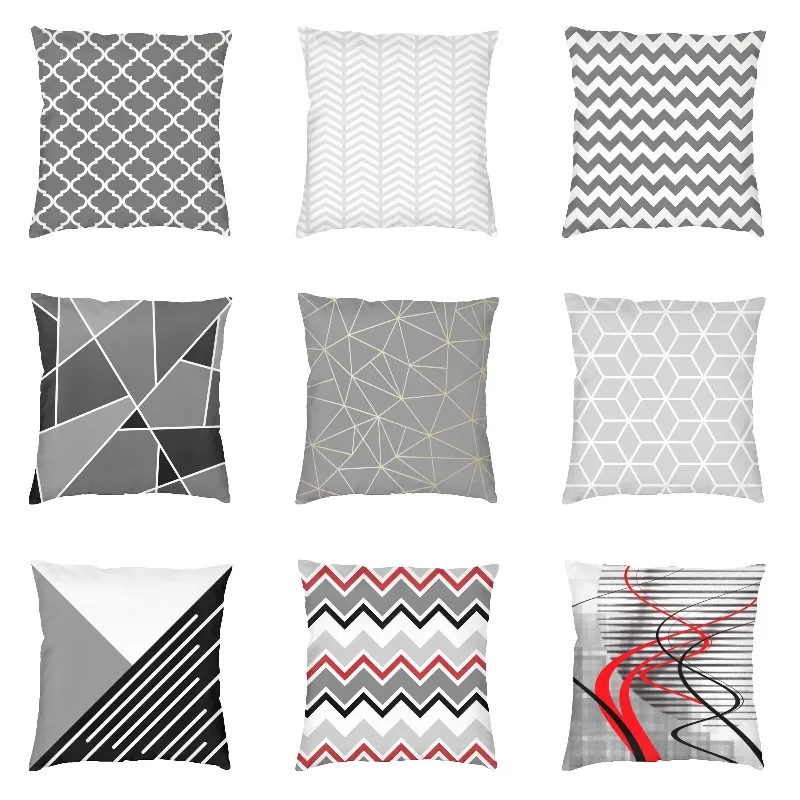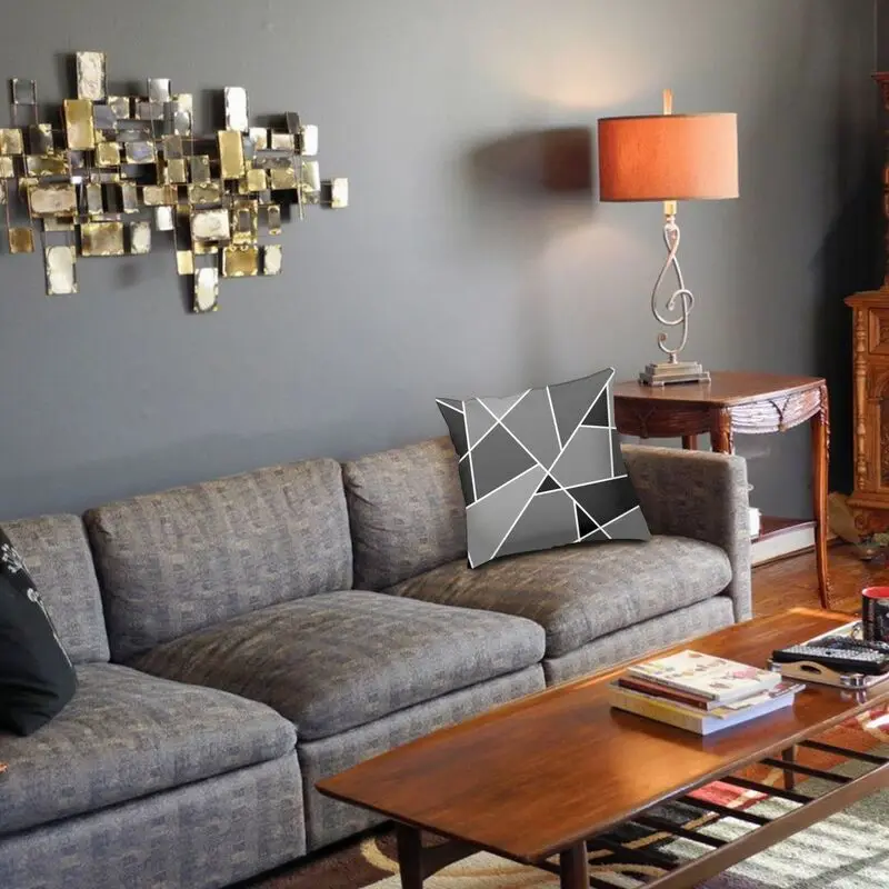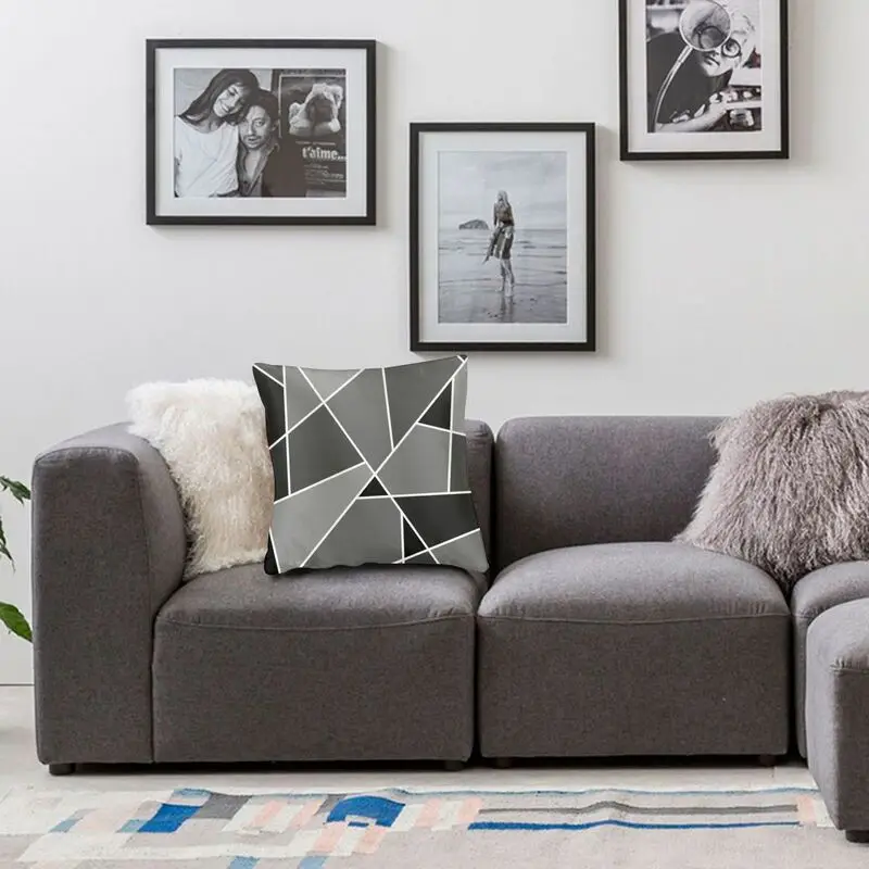 Серый современный геометрический чехол для диванной подушки, декоративный чехол для салона, 3D чехол с принтом в виде мондрианской искусственной подушки, чехол для дивана