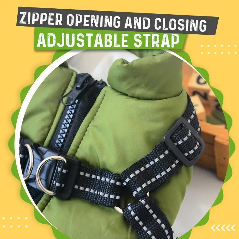 Застежка-молния, застежка и регулируемый ремешок:Молния имеет дизайн молнии с большим зубом, чтобы сэкономить время надевания и снятия. Слой ткани под молнией,Который не легко царапать и носить и предотвращает попадание собачьей шерсти.Имеется интегрированная конструкция тягового ремня сзади, и размер груди можно регулировать.