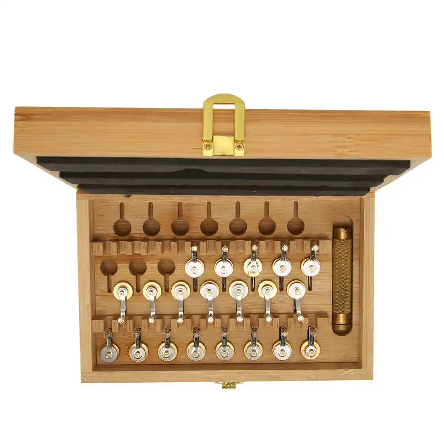 1. Инструменты для намотки часов, включая 20 различных моделей, подходят для большинства часов на рынке. 2. Высокоточный дизайн часов mainвесна winder, подходит для профессиональных работников по ремонту часов в использовании. 3. Около 20,5 см/8,1 дюйма длины, 13,8 см/5,4 дюйма ширины и 6 см/2,4 дюйма высоты коробки, идеально подходит для ремонта часов. 4. Медный материал устойчив к коррозии, прочный, длительный срок службы, специально предназначен для ремонта часов. 5. Деревянная коробка делает хранение более удобным, держать все аксессуары хорошо организованными.