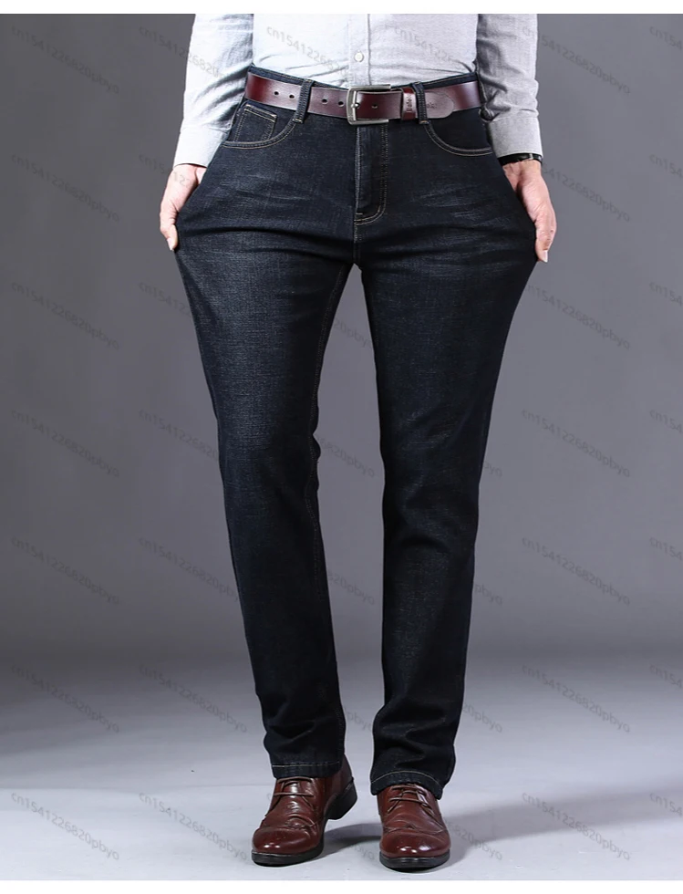 Зимние мужские джинсы 2022, черные облегающие эластичные плотные бархатные брюки, теплые джинсы, повседневные мужские флисовые брюки