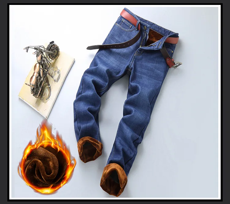 2021 Зимние флисовые толстые теплые брендовые Стрейчевые джинсы кла...