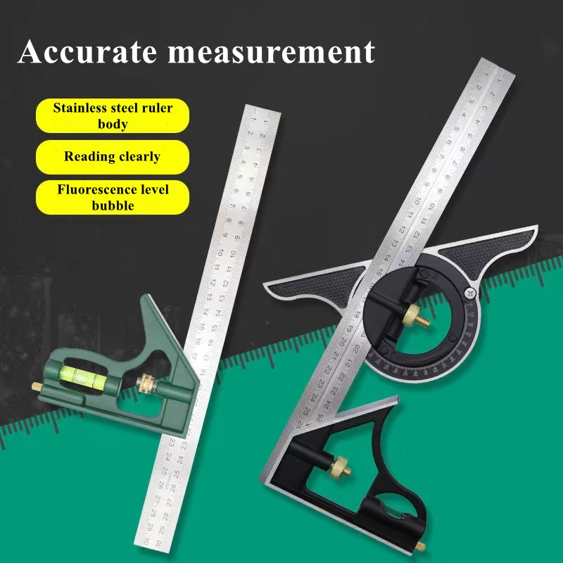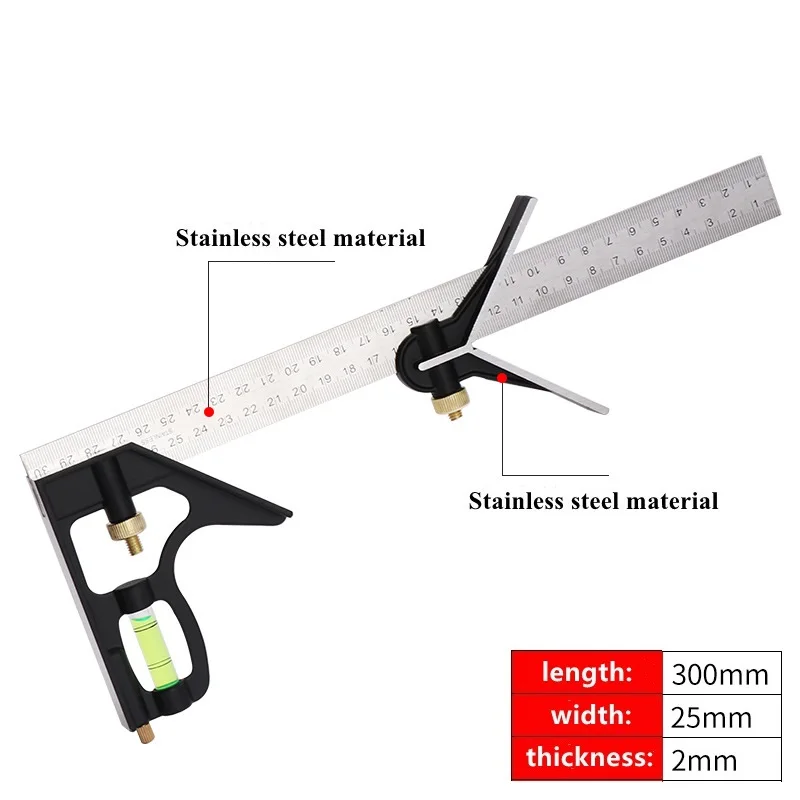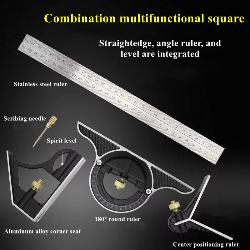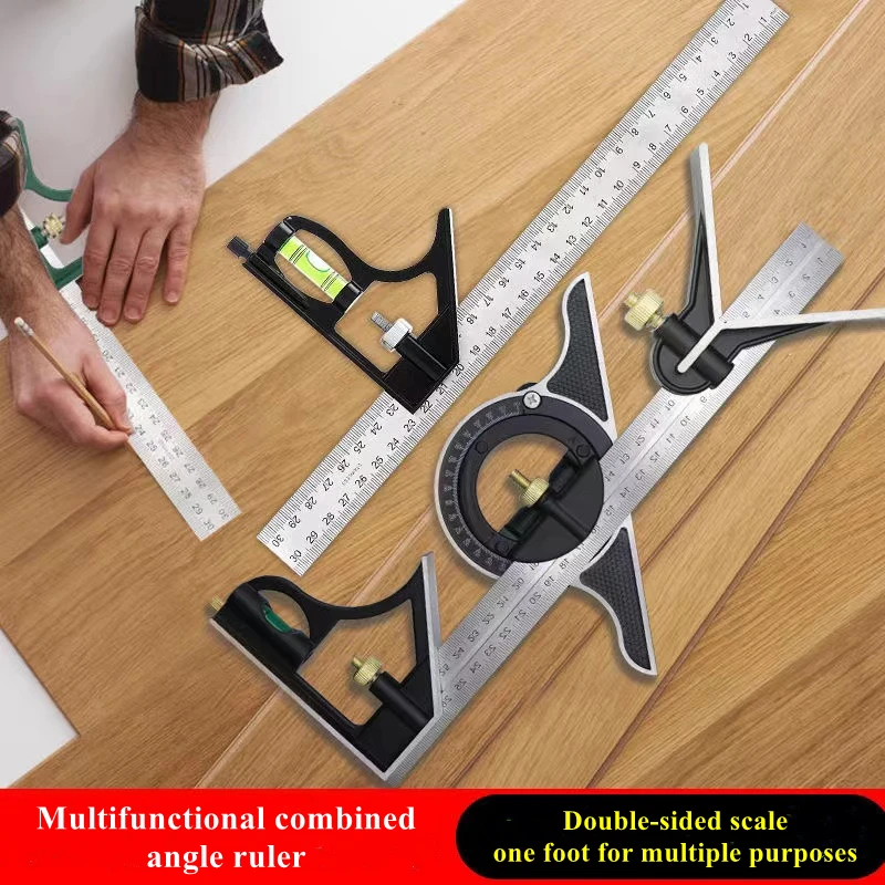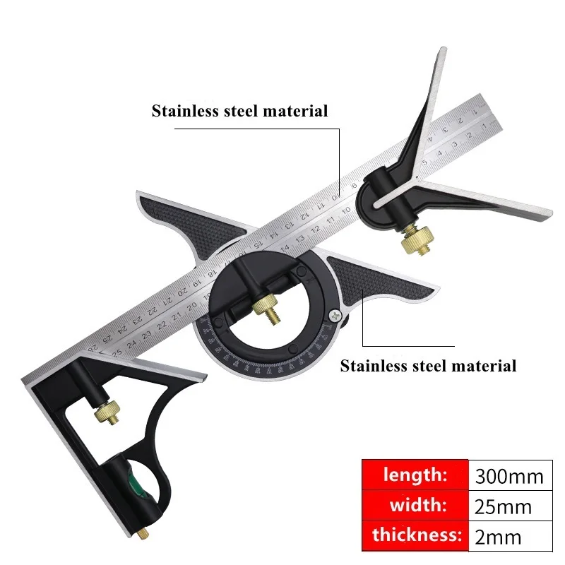 3In1 Набор квадратных угловых линейок Регулируемая многоугольная линейка из нержавеющей стали, многоугольная линейка, транспортир, Измерительные инструменты для деревообработки