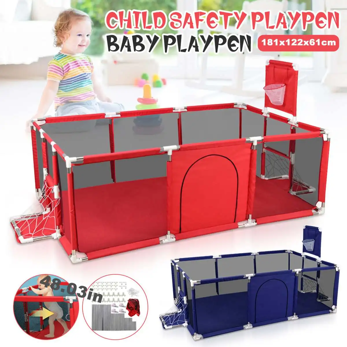 Характеристики:Название продукта: детский манежС/без корзины: сМатериал: ABS пластиковые разъемы, трубка из нержавеющей стали, ткань из полиэстера ОксфордЦвет: красный, синийРазмеры: 181*122*61 см/71,25*48,03*24,01"Размер посылка: 64*17*23 см/25,19x6,69x9,05 "(appr.)Особенности:● Тканевый манеж легко собирается. Он обеспечивает хорошее пространство для вашего малыша, но его легко разместить в любом месте вашего дома. Это отличный способ дать вашему ребенку свободу передвижения, но убедитесь, что они находятся в безопасном месте.● Он поставляется с вентиляционными сетчатыми стенками для легкой видимости и открывающейся на молнии дверью, что обеспечивает легкий доступ. Его легко поддерживать. Вы можете протереть его или удалить ткань и поместить в стирку.● Он будет доставлен вам безопасно в хорошо упакованной коробке, чтобы обеспечить лучшее качество.● Подходящий возраст: предназначен для детей до 36 месяцев