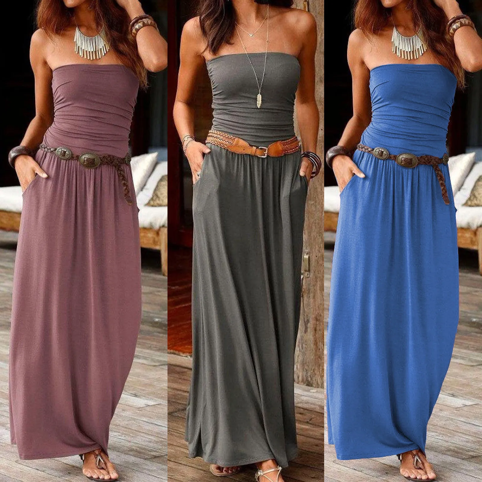 Женское длинное платье в горошек, повседневное пляжное платье с раз...