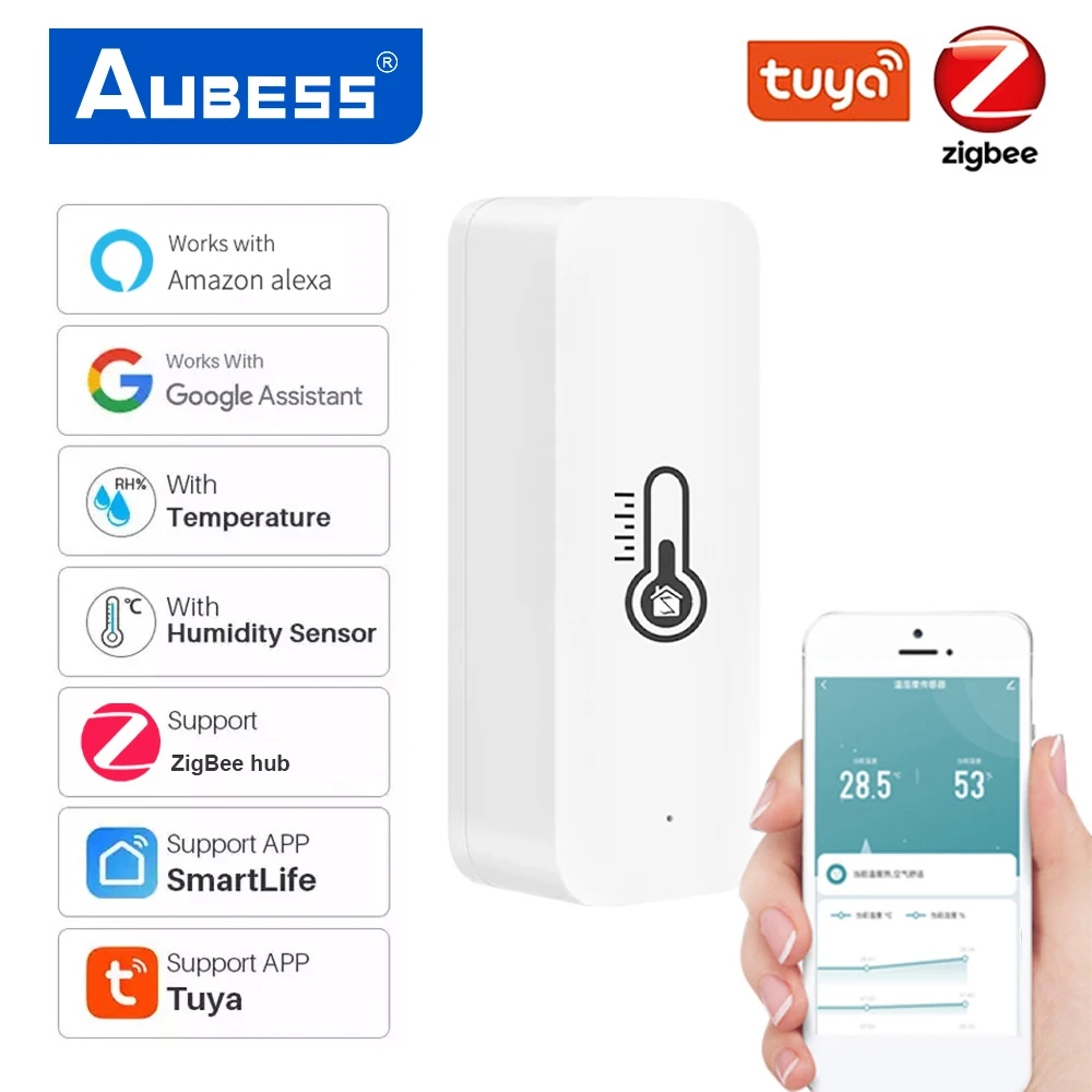 Датчик температуры и влажности Tuya ZigBee, электронный комнатный термометр, гигрометр, умный мониторинг погоды, работает с Alexa
