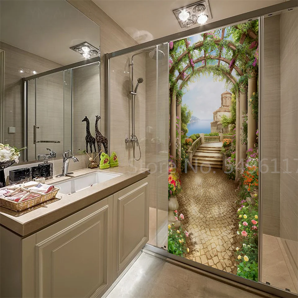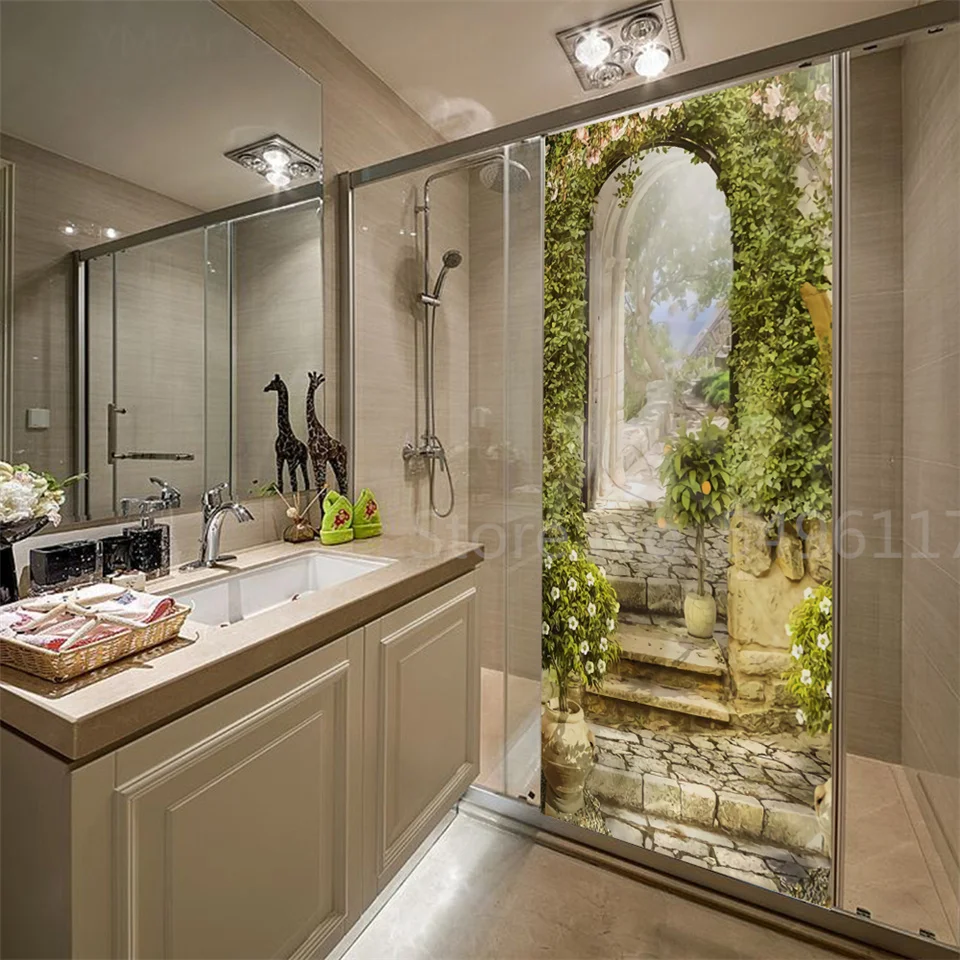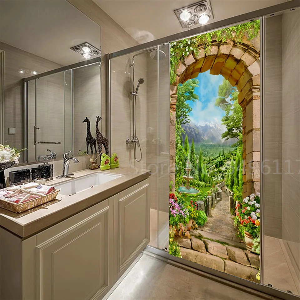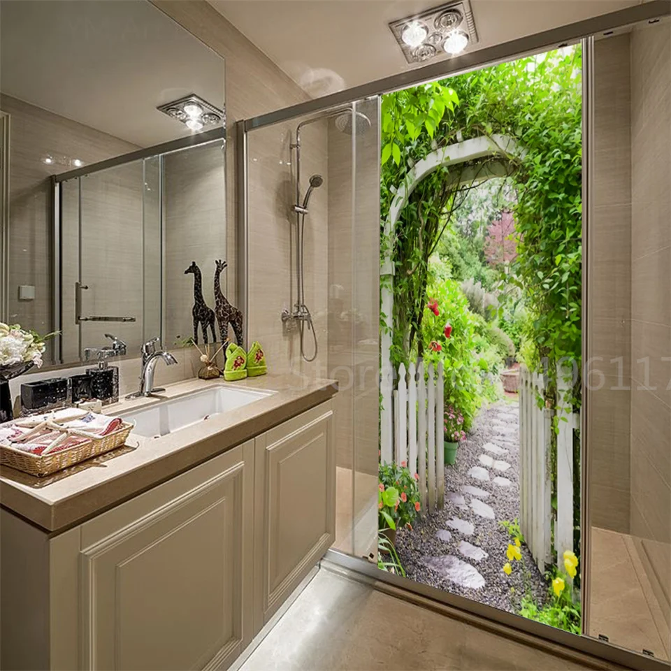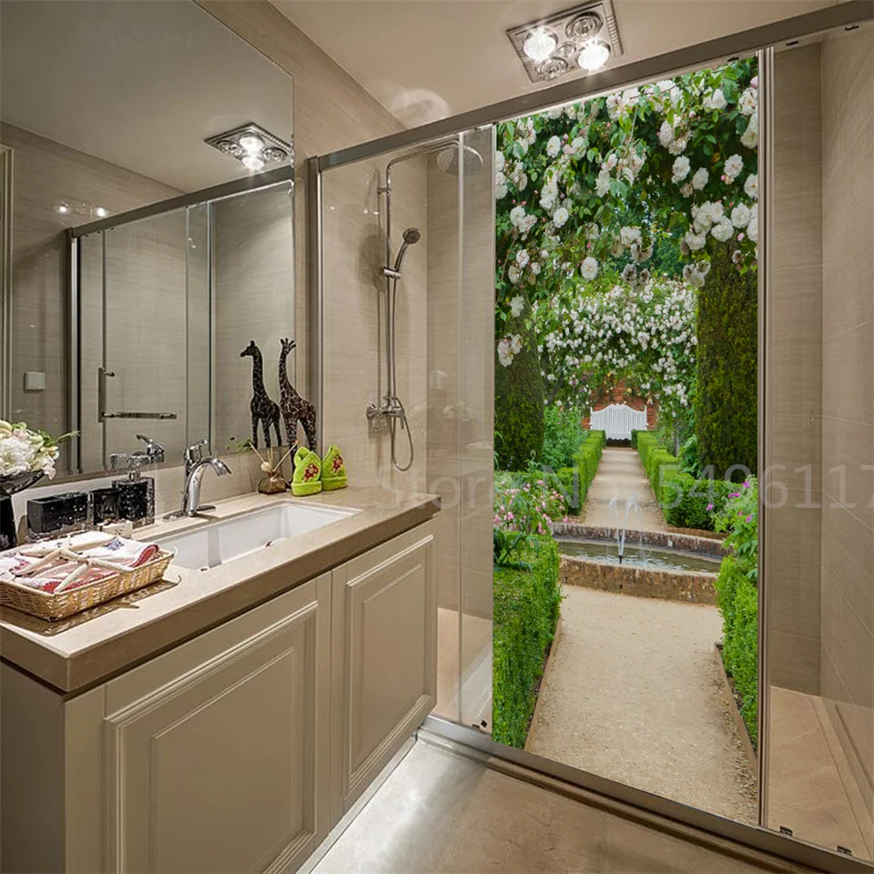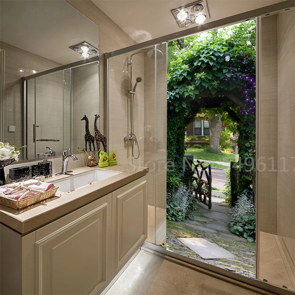 Наклейка на дверь дома, садовые пейзажи, 3D самоклеющиеся виниловые обои для ванной комнаты, кухни, спальни, украшения, двери, покрытие, постеры