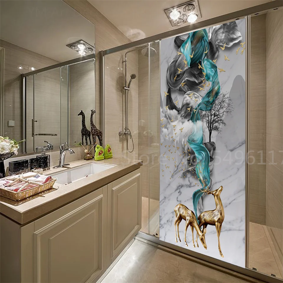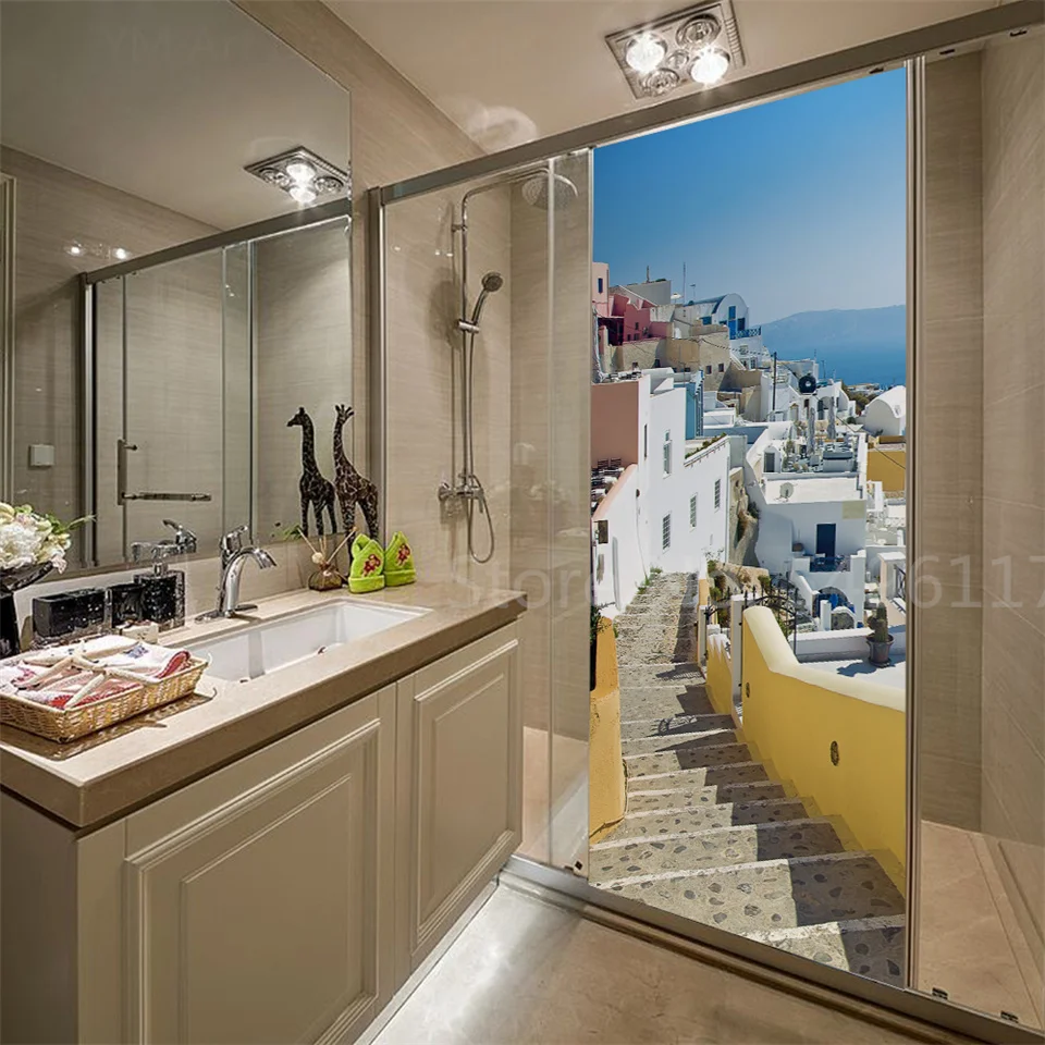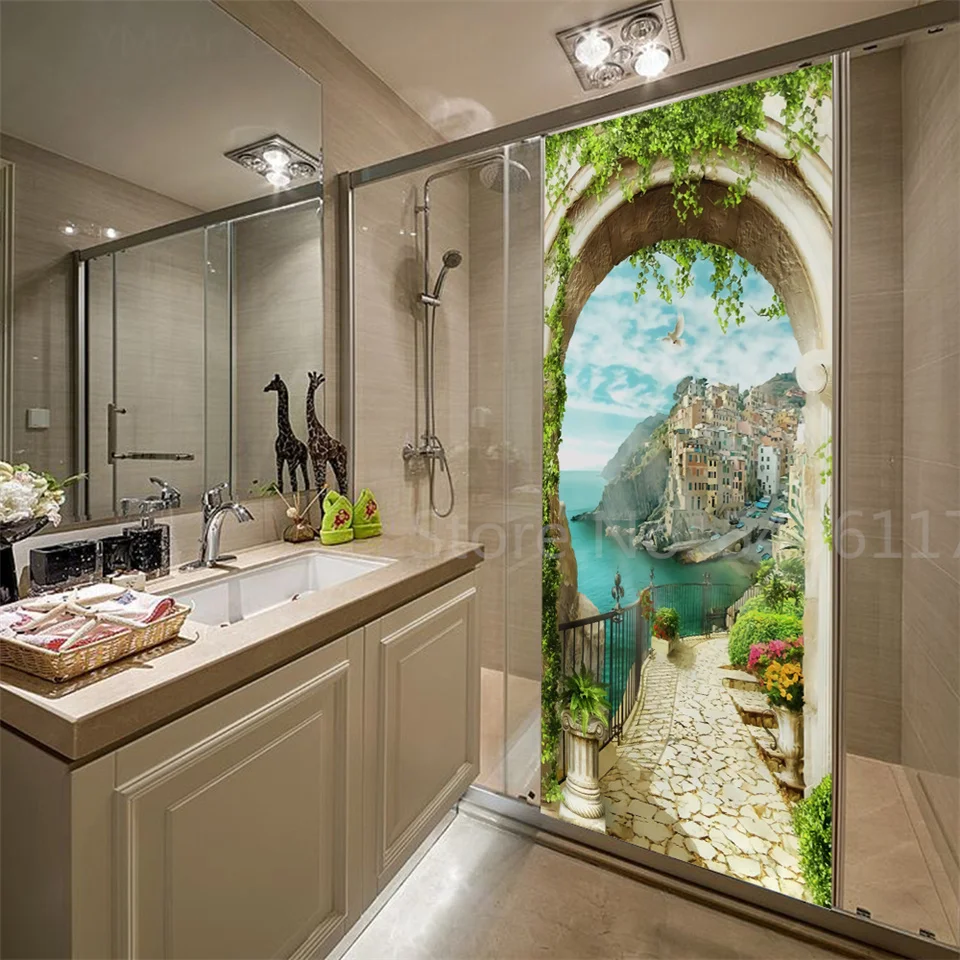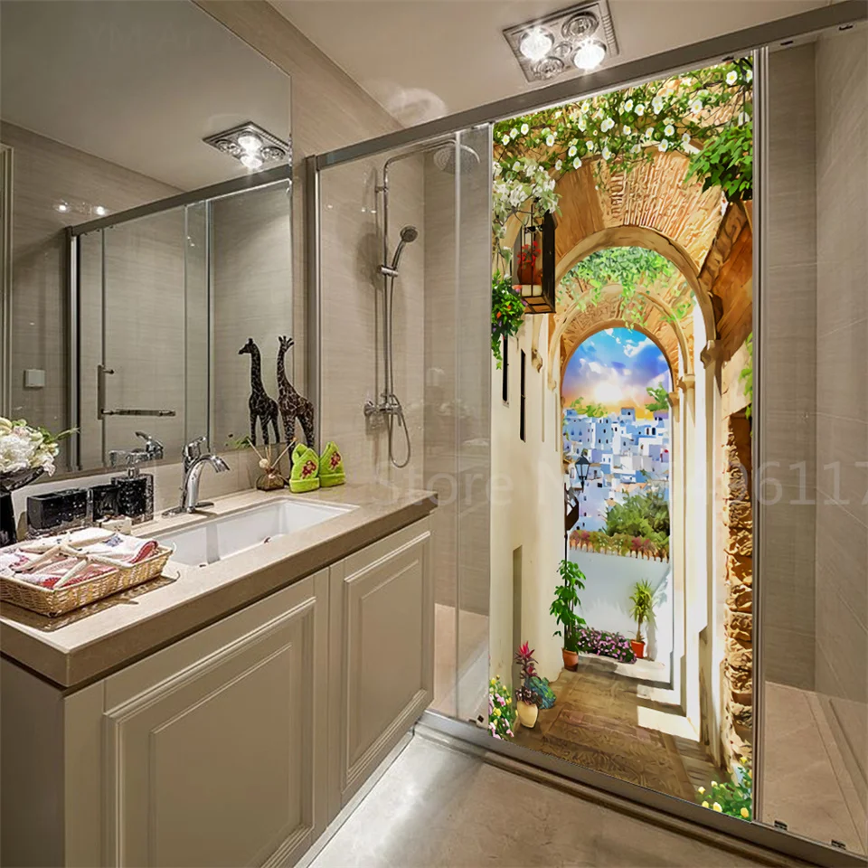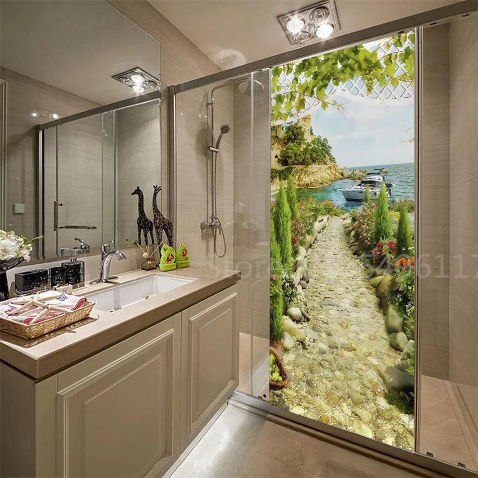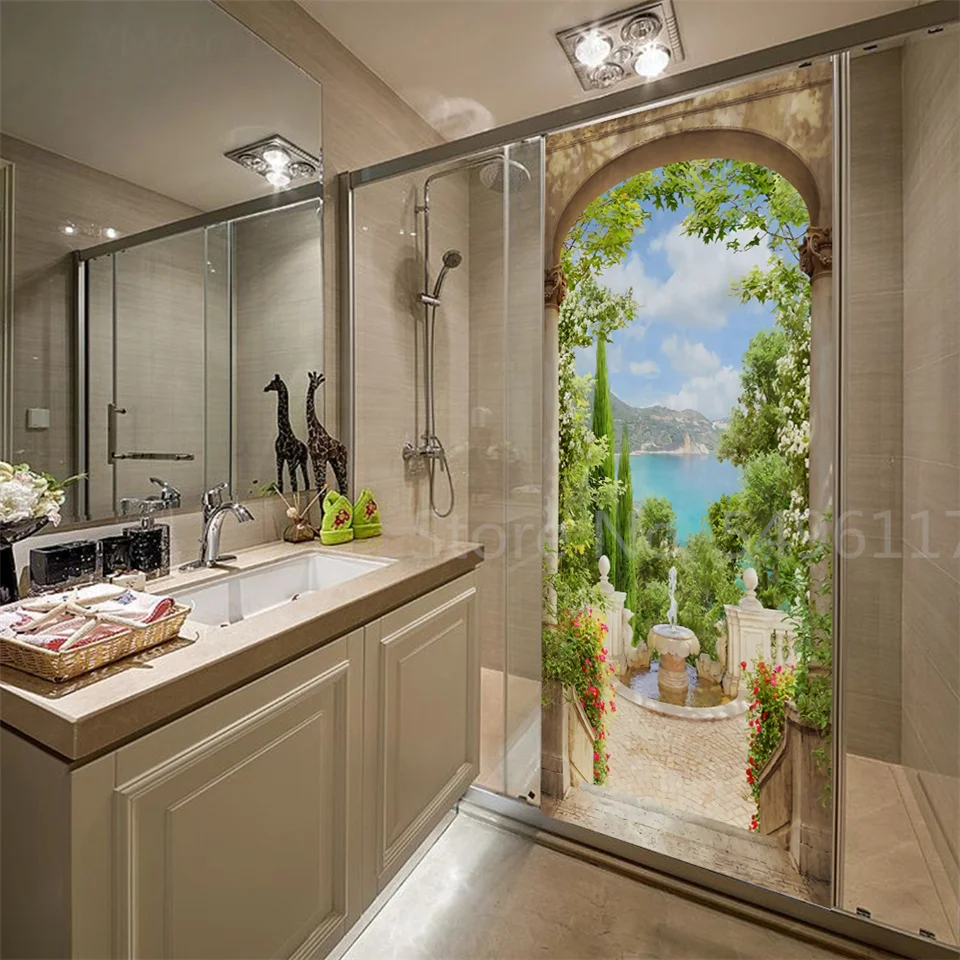 Наклейка на дверь дома, садовые пейзажи, 3D самоклеющиеся виниловые обои для ванной комнаты, кухни, спальни, украшения, двери, покрытие, постеры