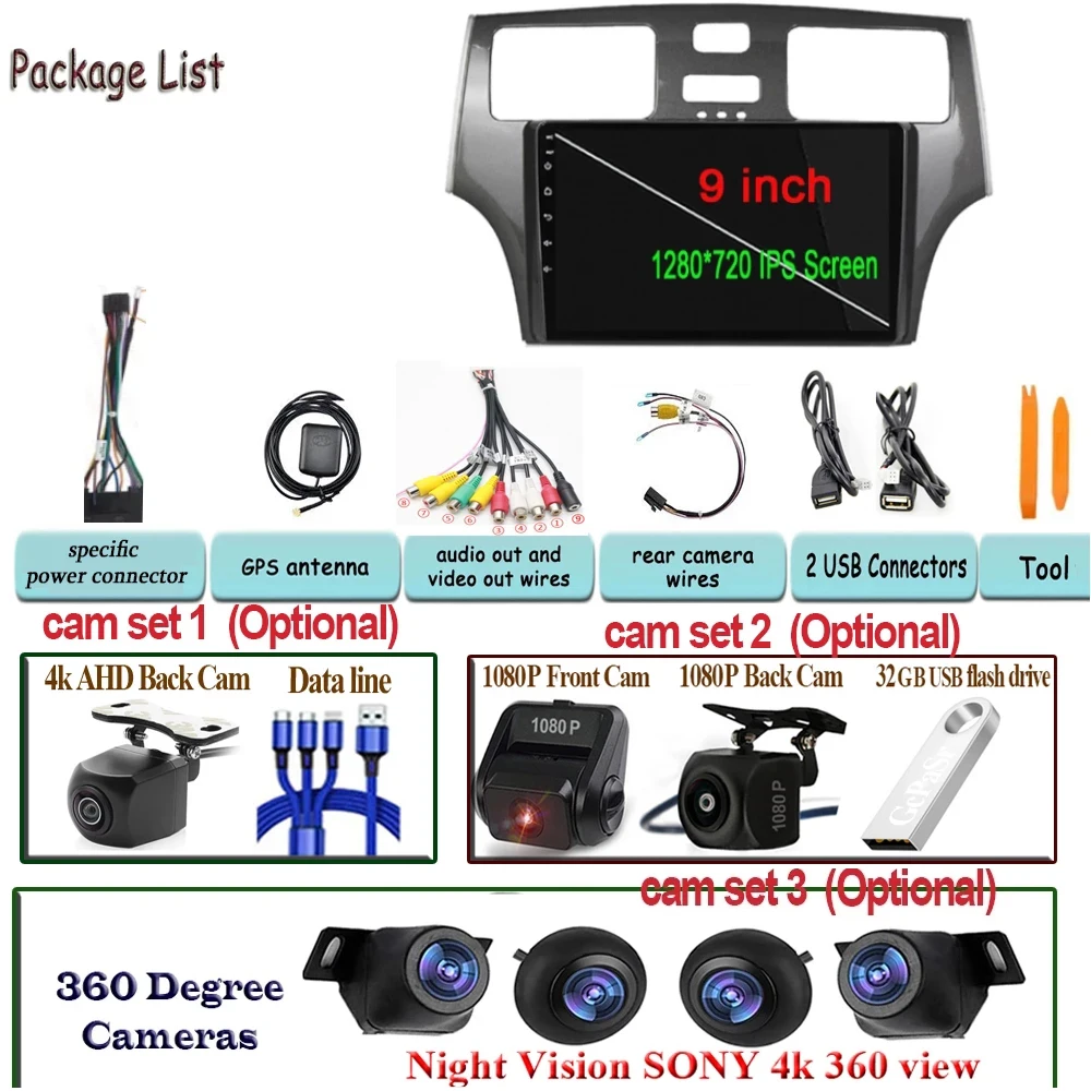 Автомобильный стерео Мультимедийный проигрыватель 360, камера для H...