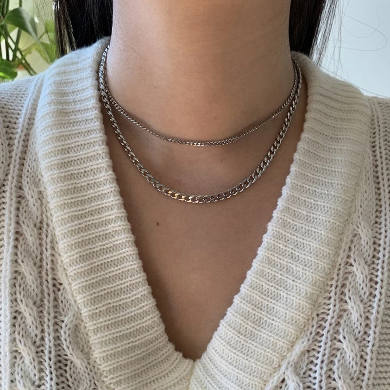 Женское колье из кубинской цепи, характерное ожерелье из нержавеющей стали шириной 5 и 7 мм, колье-чокер, Подарочная бижутерия