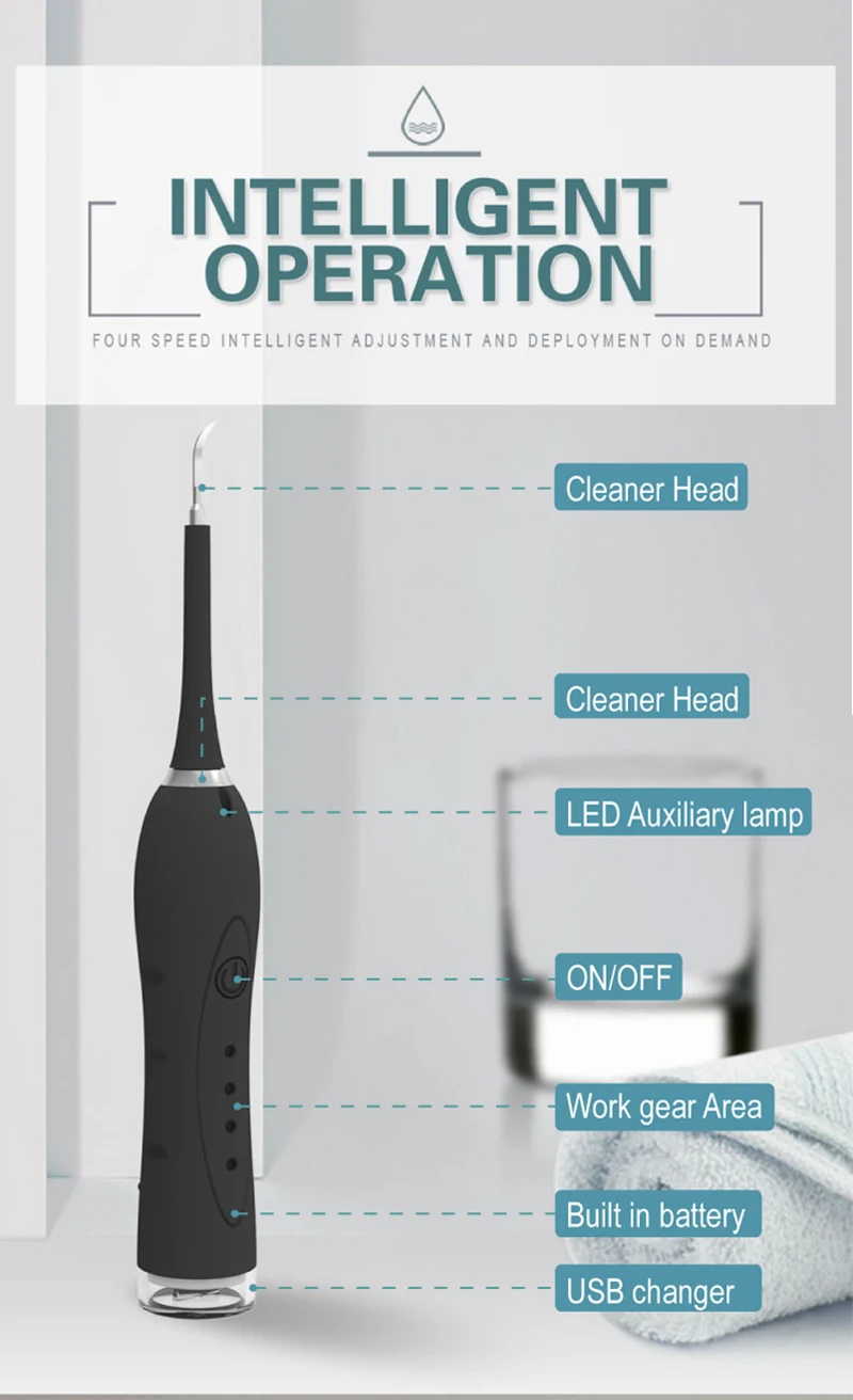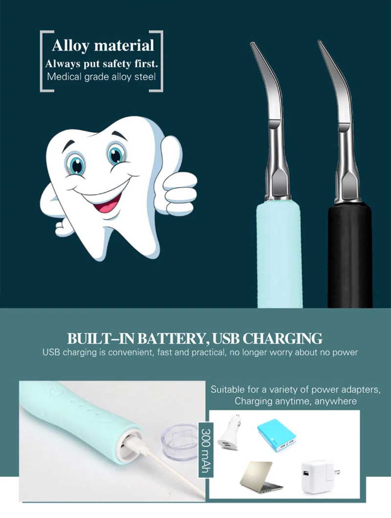 Интеллектуальная высокочастотная вибрация, 31000 раз/мин звуковой резонанс, мощность вибрации 40 кГц, глубокое очищение зубов, не повреждая зубную эмаль, делает ваши зубы красивыми и яркими.