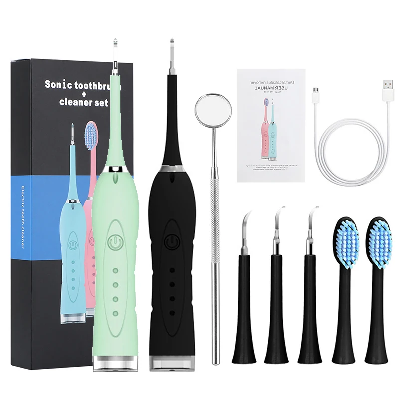 Очиститель зубов + электрическая зубная щетка, многонаправленная чистка без мертвых концов, профессионально удаляет зубной камень, пятна дыма, пятна чая и зубной налет.