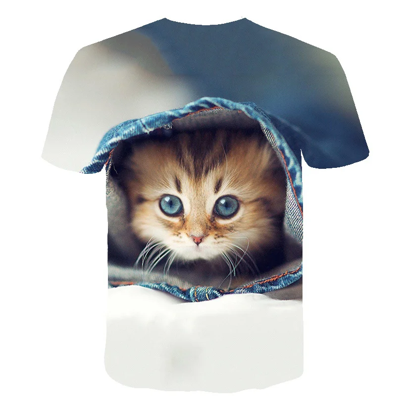 Новинка 2022, милая крутая футболка с 3D принтом животного, кошки, летняя Мужская модная повседневная футболка в стиле хип-хоп с коротким рукавом, уличная одежда