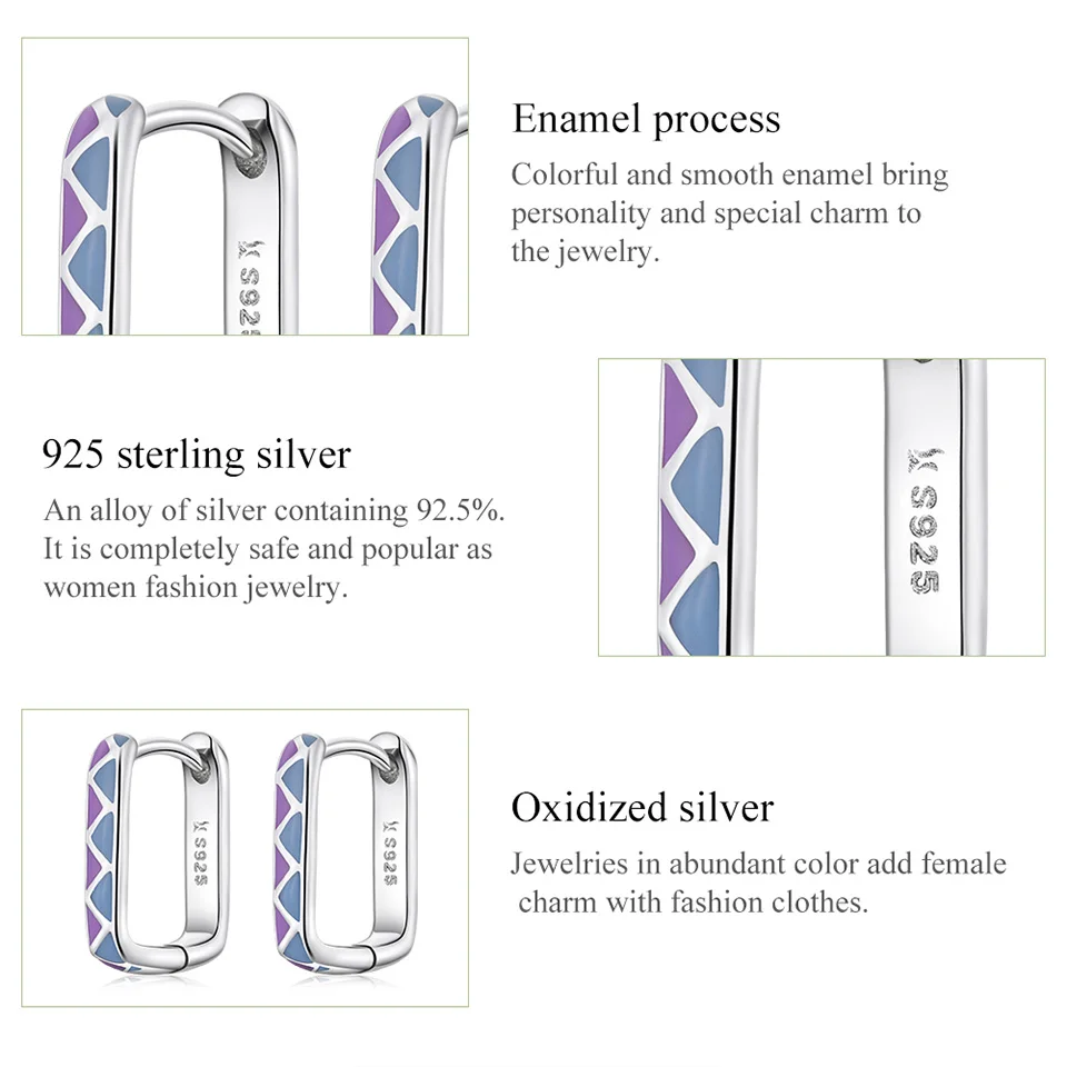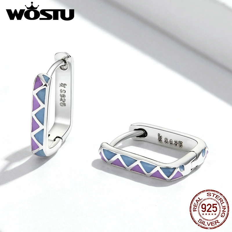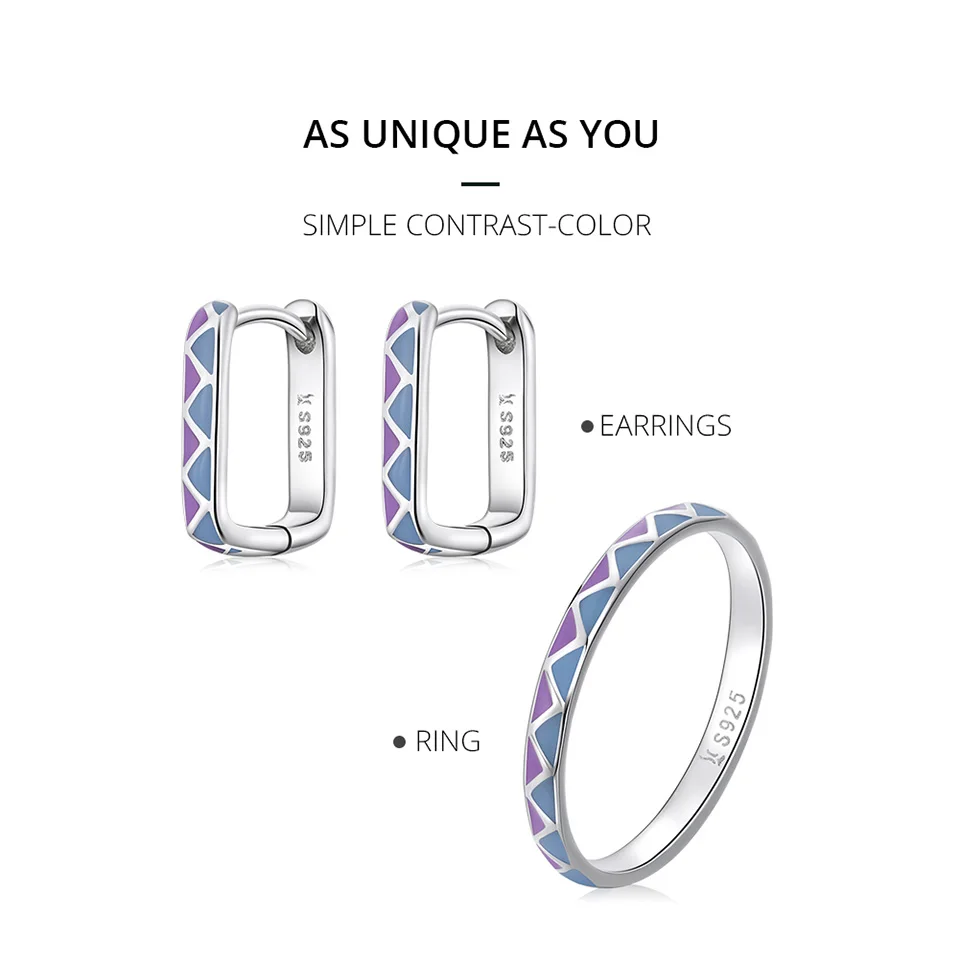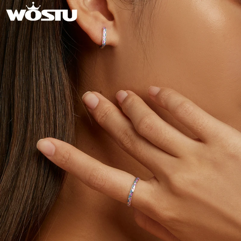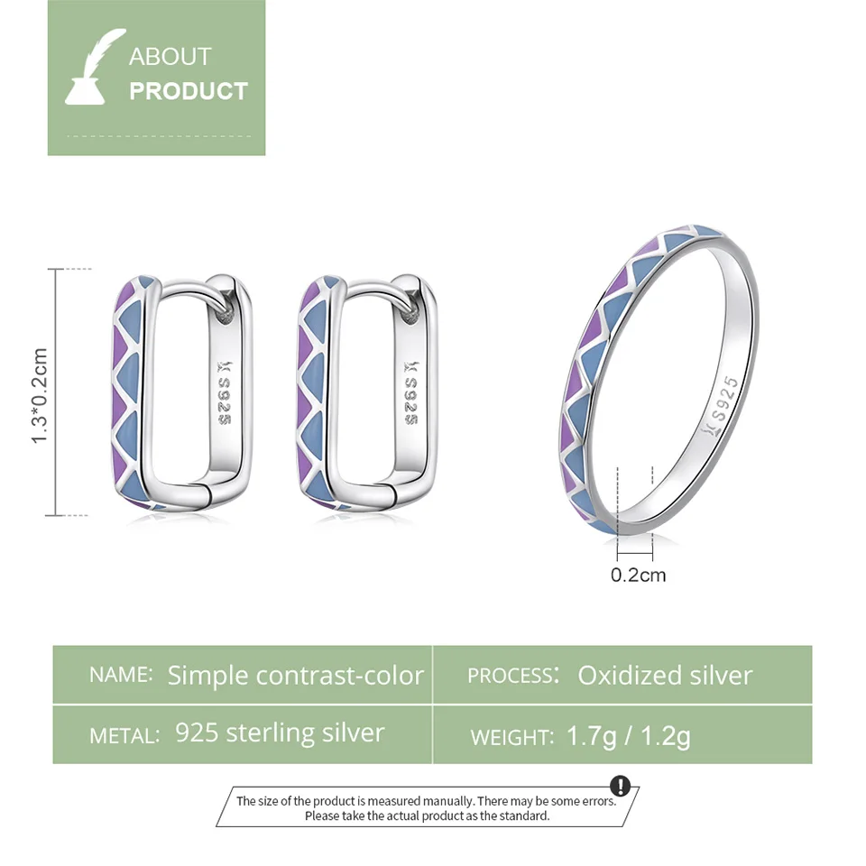 WOSTU серебро 925 пробы Европейский Простой контрастный цвет фиолетовый синий кольца серьги-гвоздики геометрический набор украшений для женщин подарок