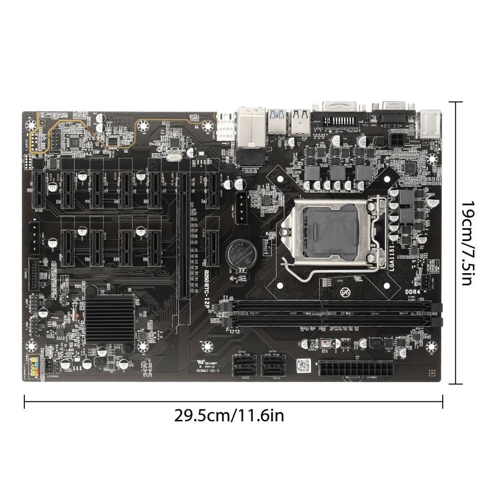 Описание:Высокая производительность и высокая надежность, долговечная Замена для старого или поврежденного, больше не нужно беспокоиться о том, чтобы не найти правильные аксессуары.Быстрый запуск, загрузка и передача файлов.Низкое энергопотребление, тихий, надежный и прочный.Эффективно уменьшает помехи интерфейса и потери провода, чтобы обеспечить надежность данных, чтобы повысить эффективность работы.Так что питание основной платы не зависит от внешних помех.Спецификация:Наименование товара: материнская плата BTCЦвет: черныйМатериал: PCB + металлРазмер: 29,5x19 смТип памяти: DDR4Слот для памяти: 2 × DDR4Частота: 2133/2400/2800/3000 МГцПамять: максимум 16 гНабор микросхем: Intel B250Тип гнезда ЦП: LGA 1151Разъем питания: 1*4pin, 1*24pinРежим питания: 3 фазы, 2 гнезда вентилятора ЦПСлот расширения:1 * графический слот PCI-E X1611 * PCI-E X1 графический слот2 * USB2.0 булавки1 * USB3.0 pin1 * COM pin2*4p квадратный порт питания4 * порт SATA3.0Порт ввода/вывода:2 * PS/2 порта клавиатуры и мыши универсальный порт1 * RJ45 100 м Ethernet порт1 * DVI выход высокой четкости1 * VGA2 * Порт USB 3,04 * USB 2,0 портFeature1: скорость с 12 разъемами PCIe и только одним разъемом питанияОсобенности 2: разделяет 12 слотов PCIe на 3 группыFeature3: 5X Защита III аппаратный уровень гарантии с безопасным слотным ядром.Feature4: защита LAN и защита от перенапряженияFeature5: обнаружение состояния слота PCIeFeature6: поддерживает до шести портов USB 3,0Feature7: поддерживает до шести портов SATA 6 Гбит/с, скорость полосы PCIe 3,0Примечание:-Из-за большого объема доставки ИТ-индустрии цвет нижней пластины, слота памяти и вставного материала, произведенного заводом в каждой партии, может меняться, но это влияет на функции продукта. Если вы не согласны с изменением цвета, пожалуйста, не размещайте заказ. Спасибо за понимание.-Возможны небольшие погрешности в размере при ручном измерении.-Отклонение цвета может отличаться из-за различных настроек монитора, пожалуйста, поймите.Упаковочный листПосылка включает в себя:1 х материнская плата BTC