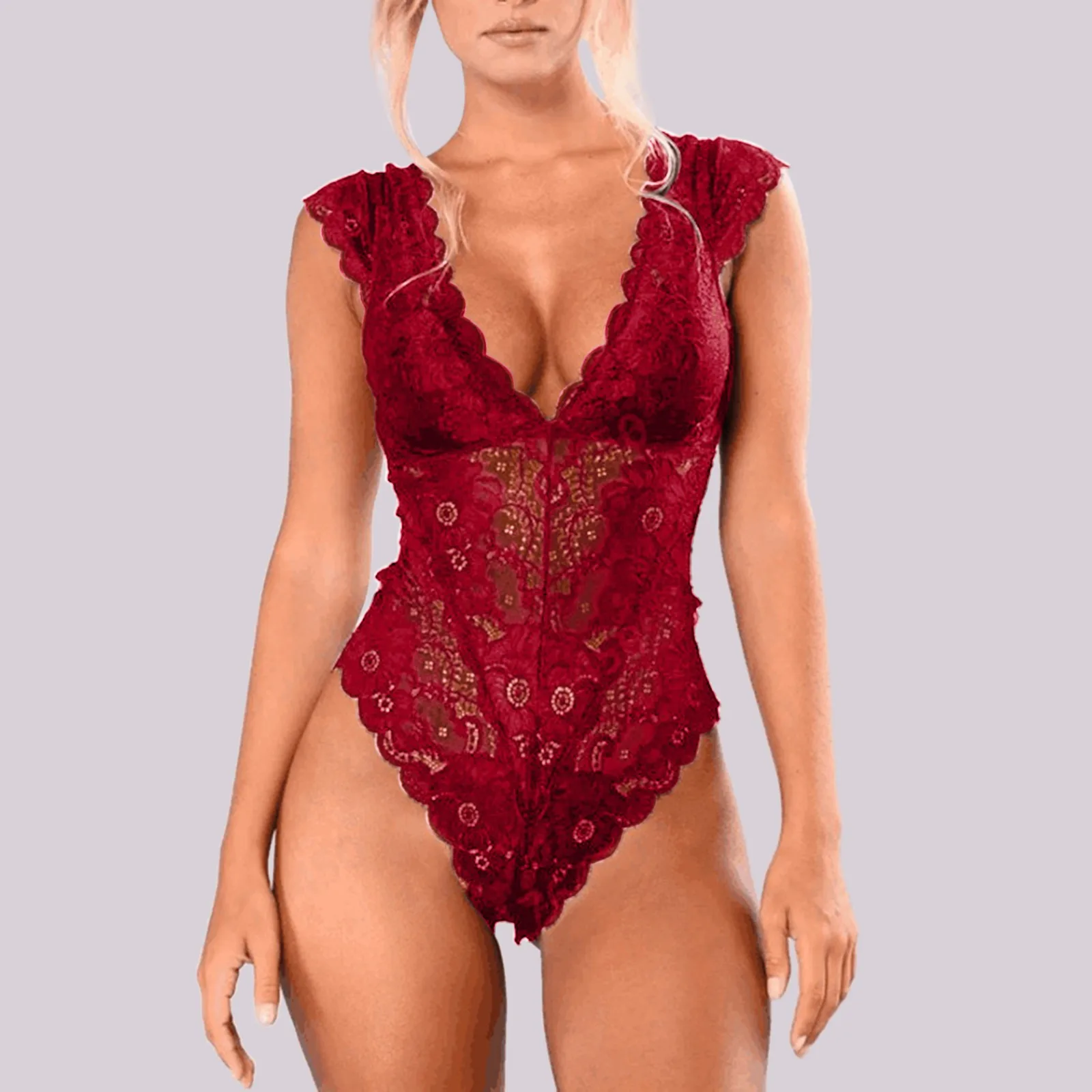 Женское сексуальное кружевное цельное нижнее белье Babydoll Глубокий V Тедди боди