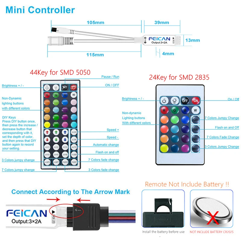 LED Strip Full SetIncluding LED strip, RGB controller, Power supply