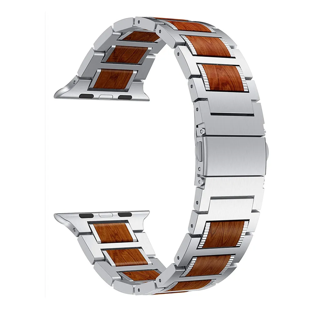 Деревянный ремешок для apple watch band 45 мм41 мм 44 мм 40 мм 42 мм 38 мм, браслет из нержавеющей стали для iwatch apple watch 5432 se 6 7