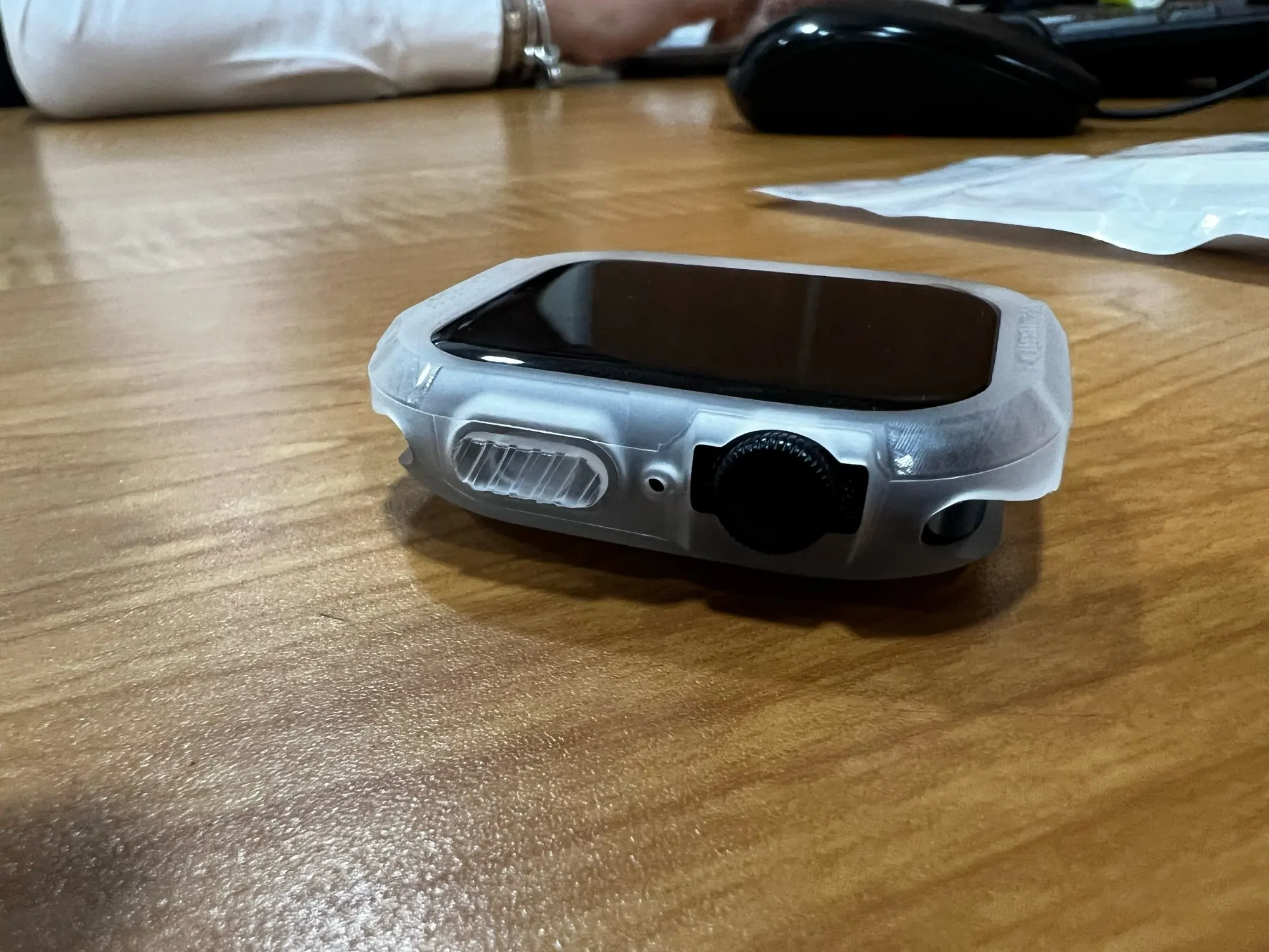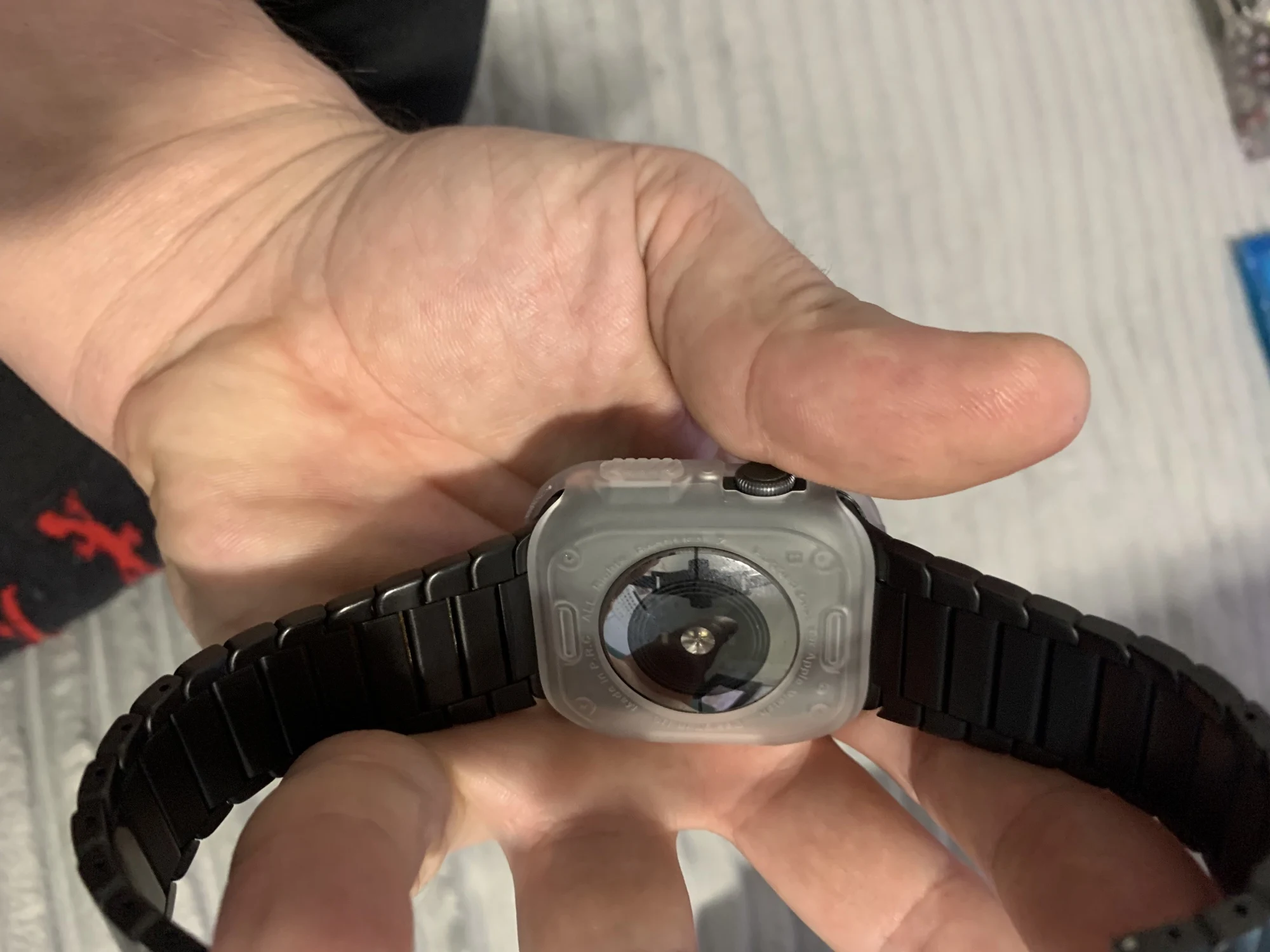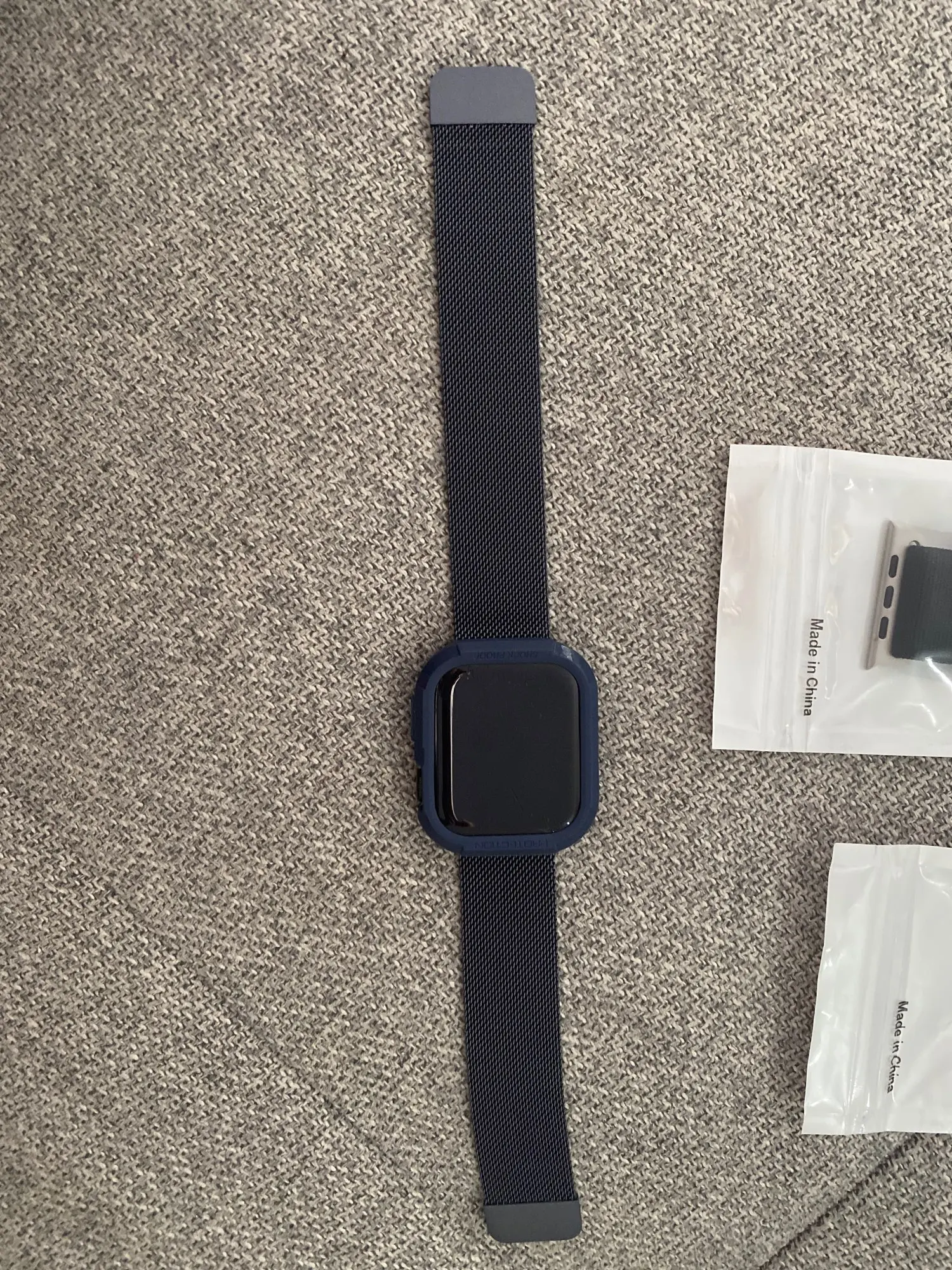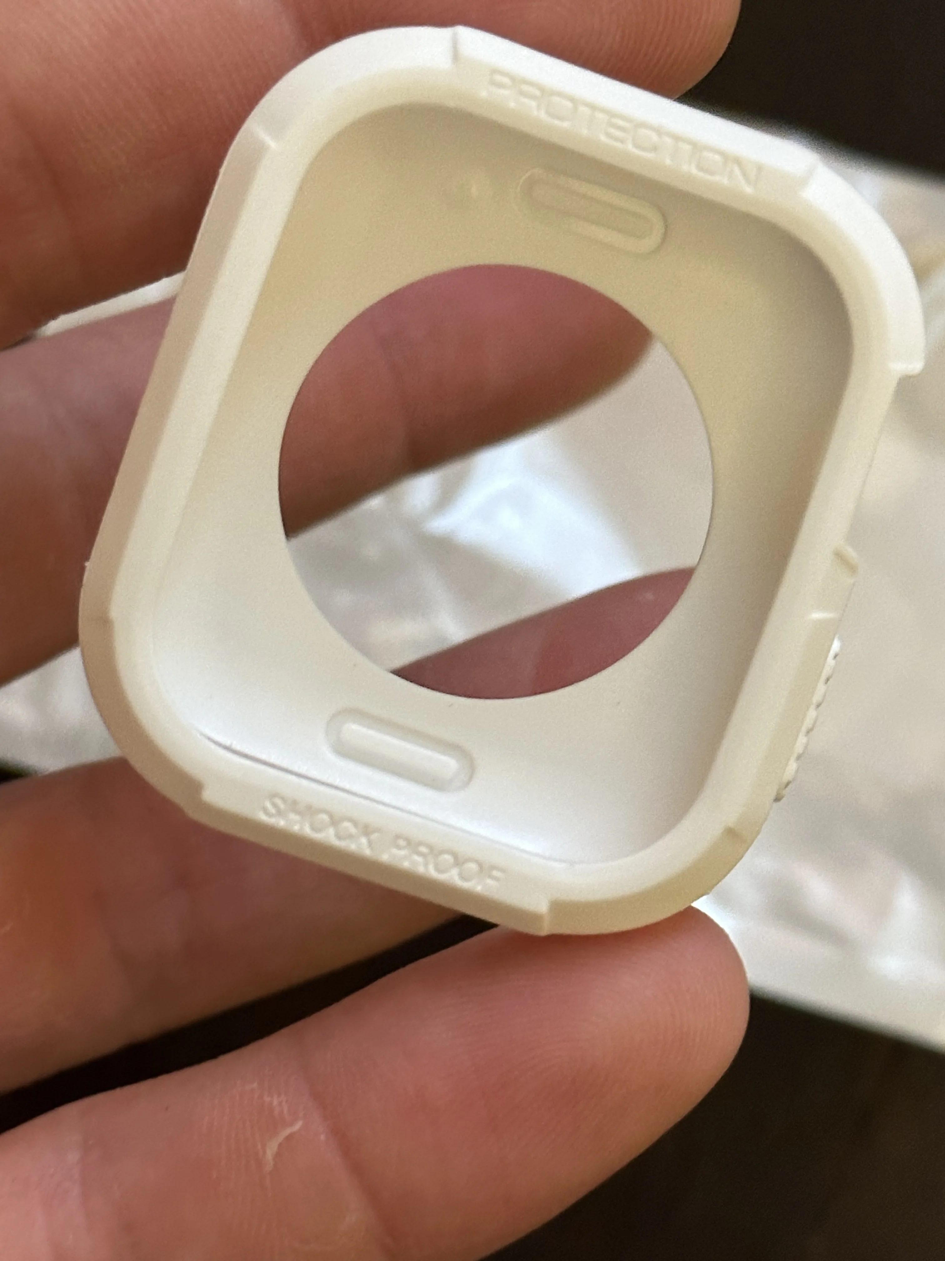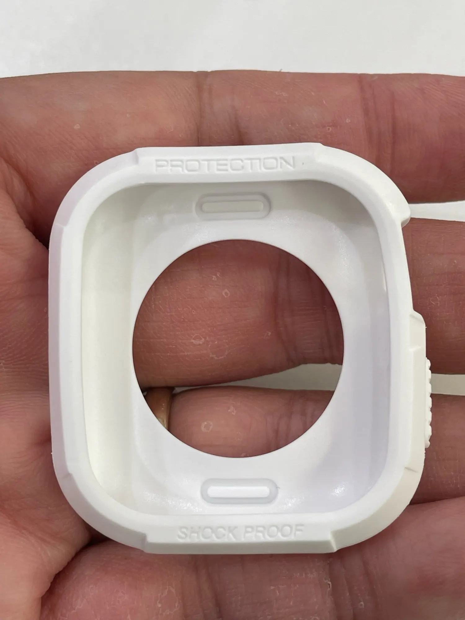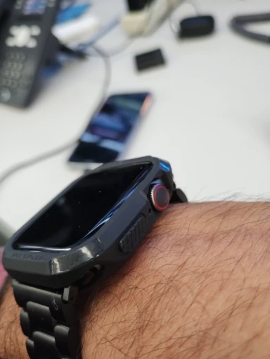 Отличный товар и отличный сервис, пришло на 2 или 3 недели раньше предполагаемой даты доставки. Он хорошо подходит для часов 38 мм и не мешает работе кнопок или зарядке. Одно слово предупреждения, если у вас установлена Защитная пленка для экрана, будьте осторожны при растягивании корпуса, так как он может зацепиться за край защитной пленки и снять ее.