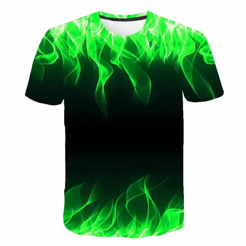 Футболка в стиле хип-хоп с объемным рисунком пламени для мальчиков и девочек, Детская футболка с трехмерным рисунком, Стильная летняя футболка в стиле Харадзюку с коротким рукавом, женская футболка