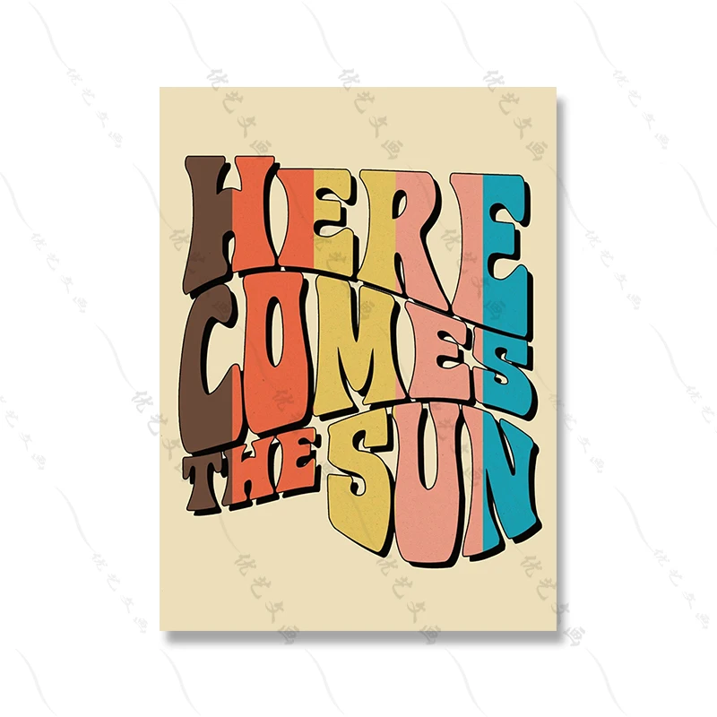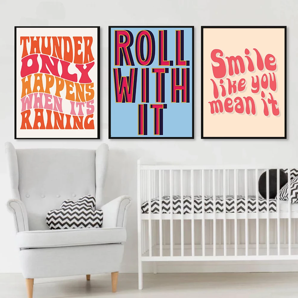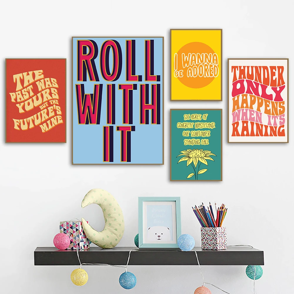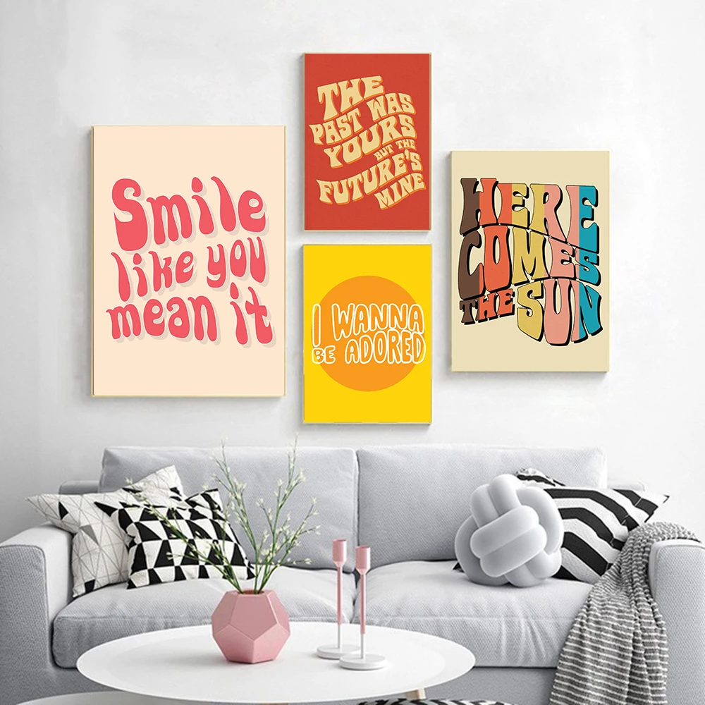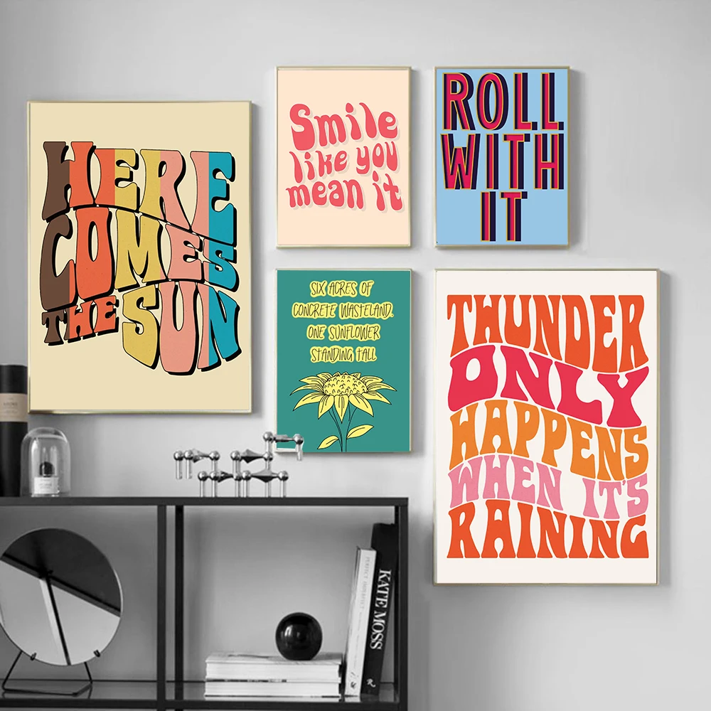 Boho 70s Groovy Ретро красочная Радужная Цитата типография плакат в...