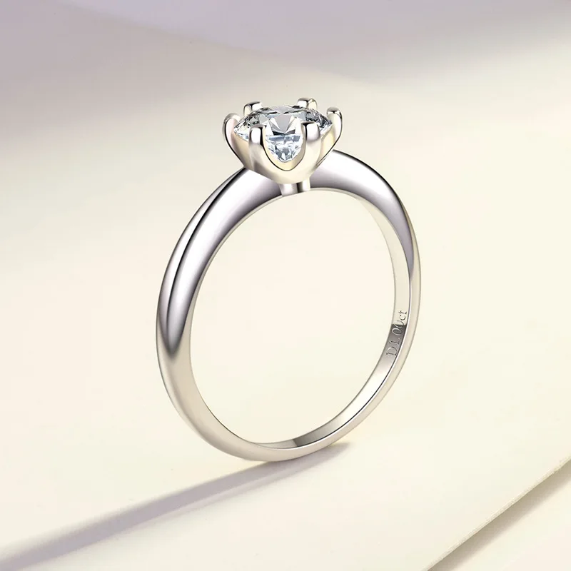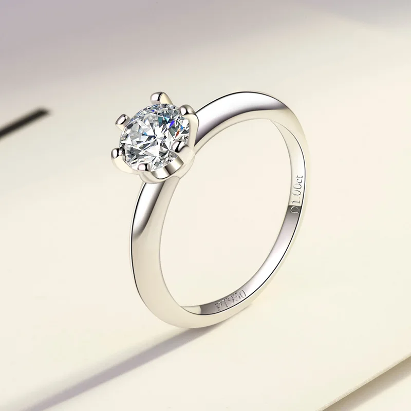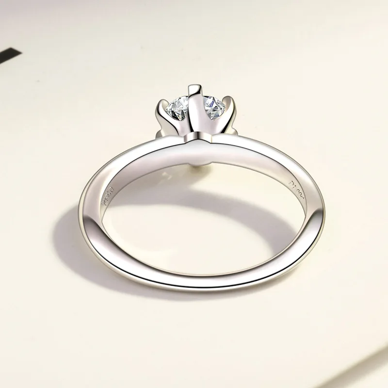 Кольцо из серебра 100% пробы, с бриллиантом круглой огранки PT950, ...