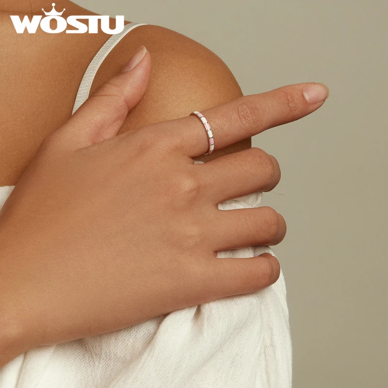 WOSTU серебро 925 пробы простые контрастные цвета розовые белые кол...