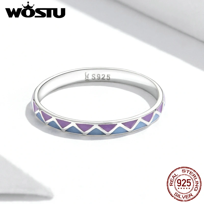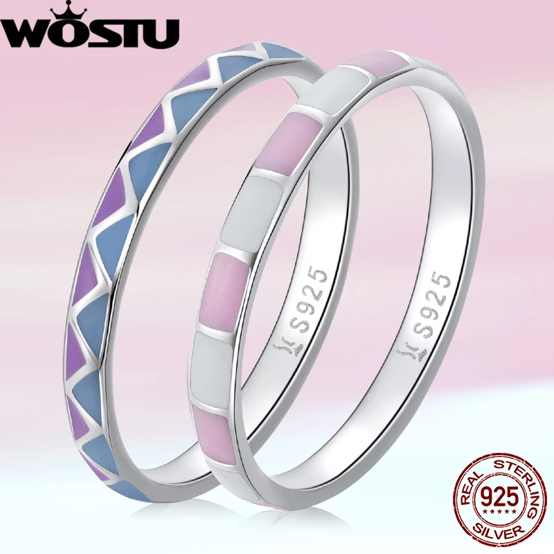 Женское кольцо с геометрическим узором WOSTU, кольцо из стерлингового серебра 925 пробы в европейском стиле с контрастными цветами, R795