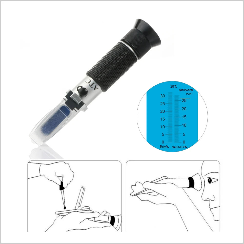 SYXLIF Портативный рефрактометр Brix измеритель концентрации сахара 32% солености 28% 2 в 1, сахаркофе ATC, рефрактометры для аквариума