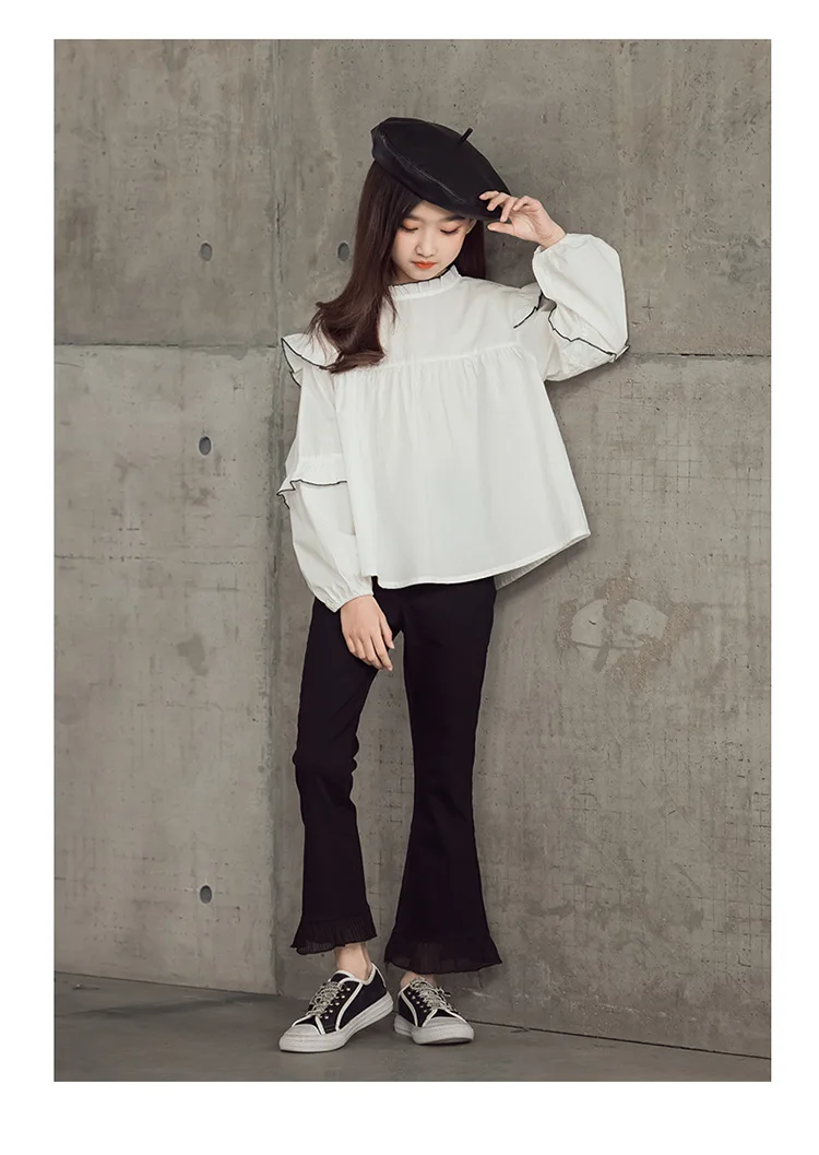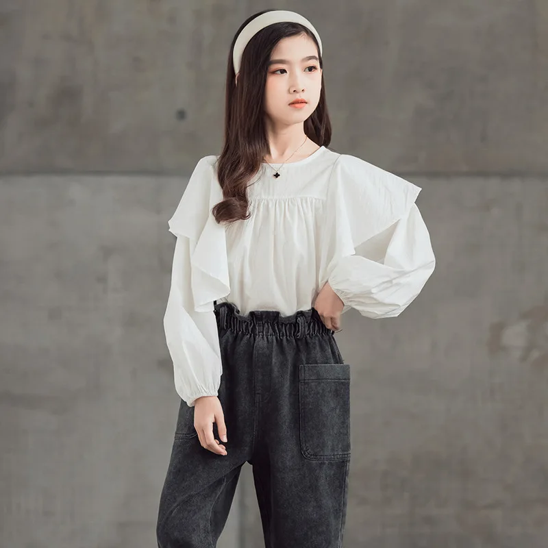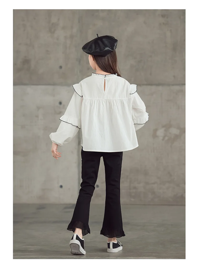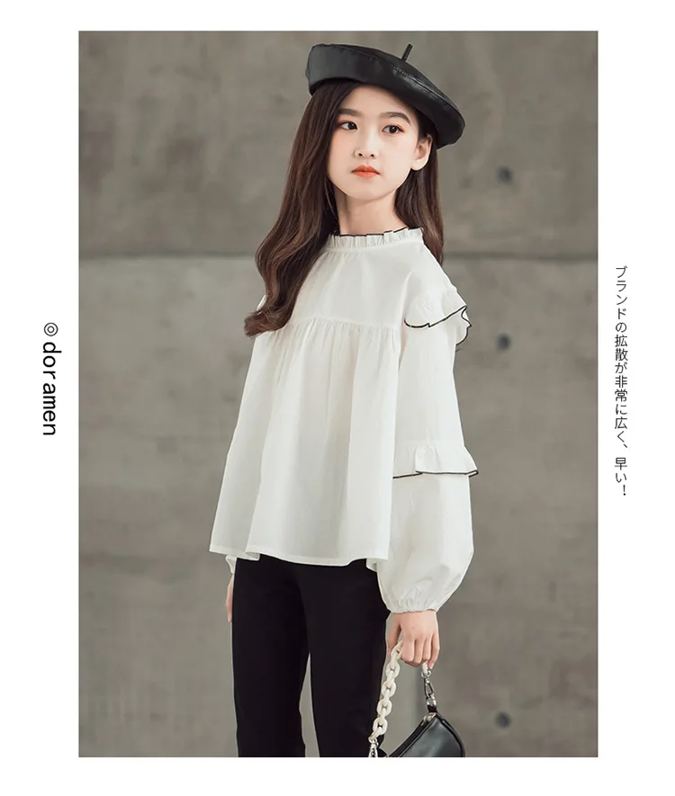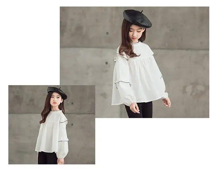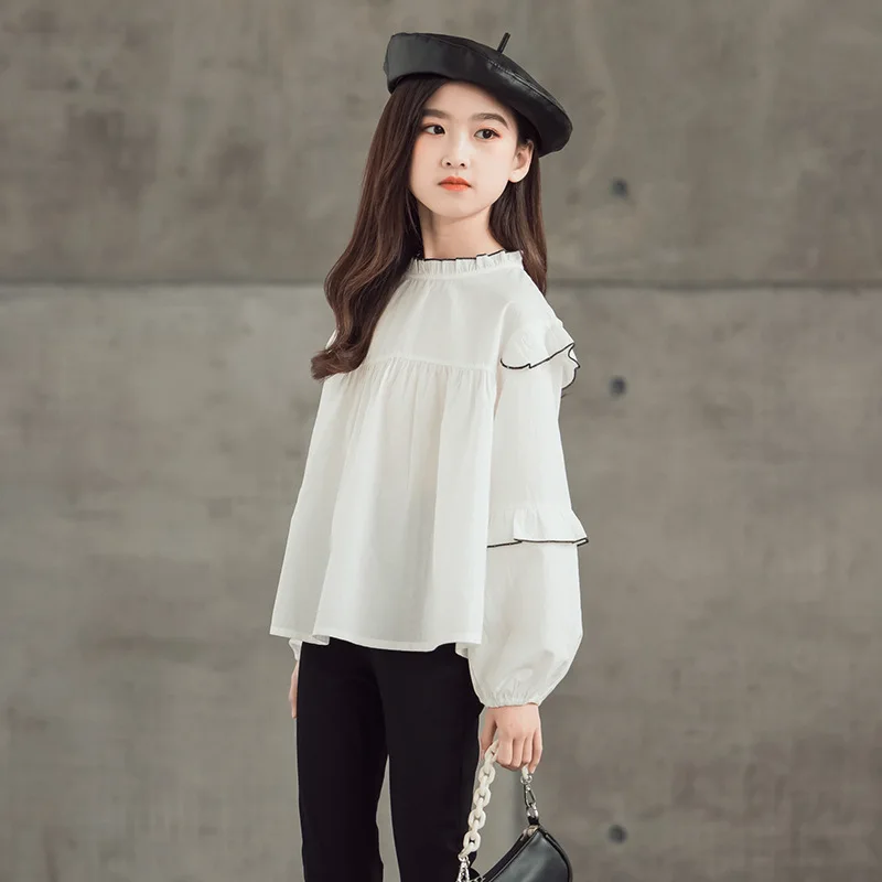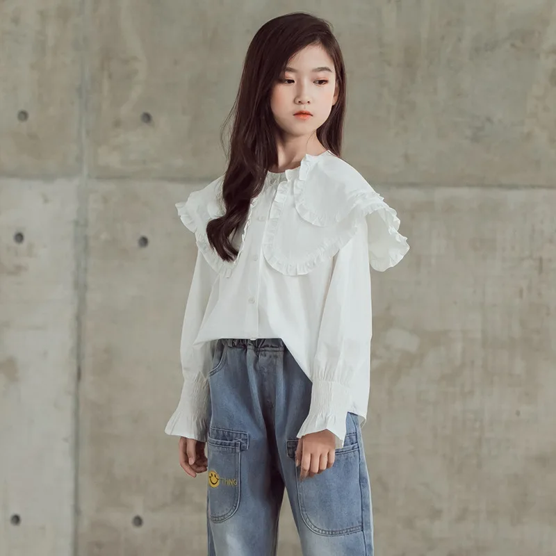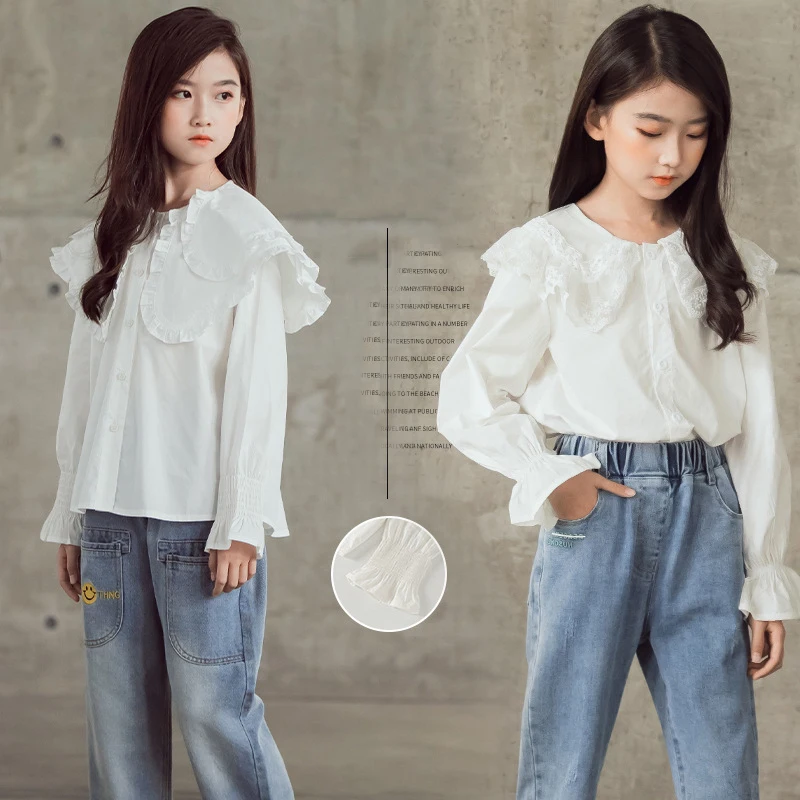 2022 Весенняя белая рубашка для девочек, школьная детская одежда, модный кукольный воротник, детские Топы с длинным рукавом, свободная блузка для подростков и студентов