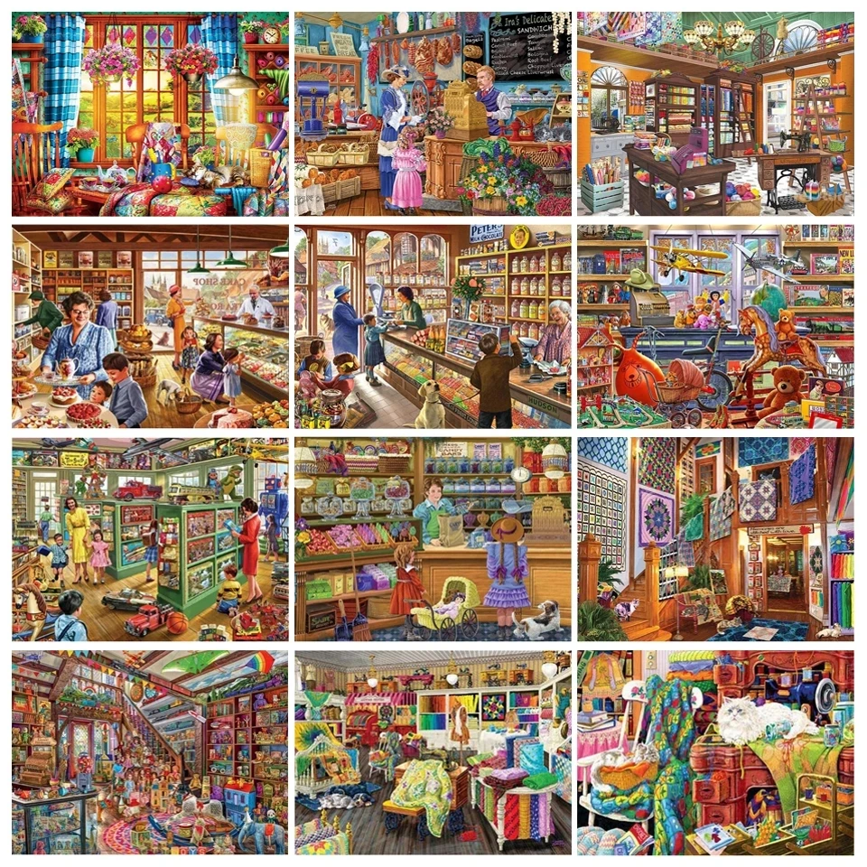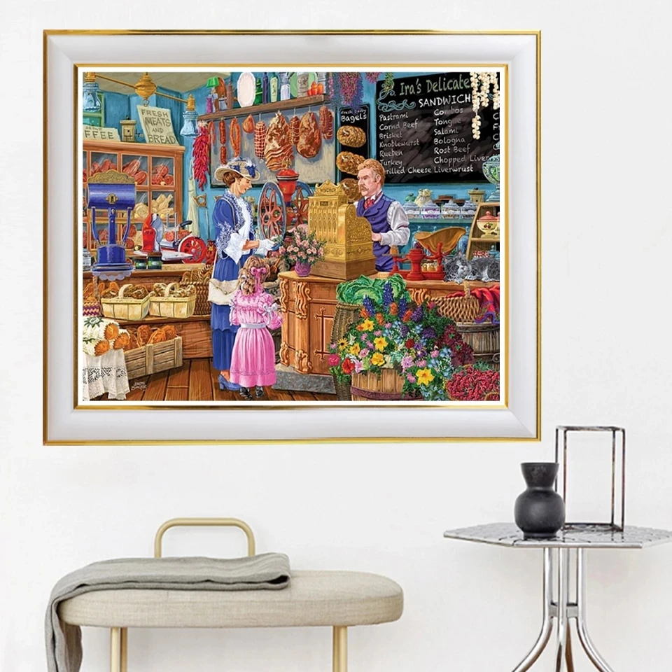 Алмазная живопись 5D сделай сам, Набор для вышивки крестиком из страз в стиле ретро, супермаркета, ландшафта, мозаика из страз, украшение для дома, подарок