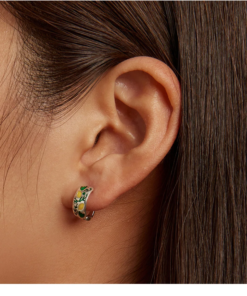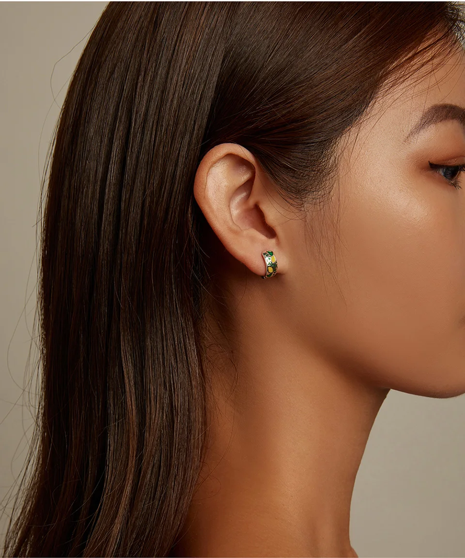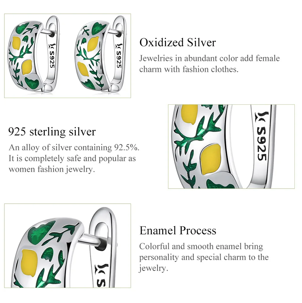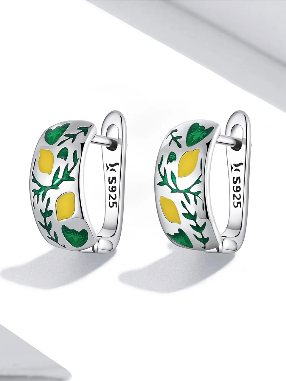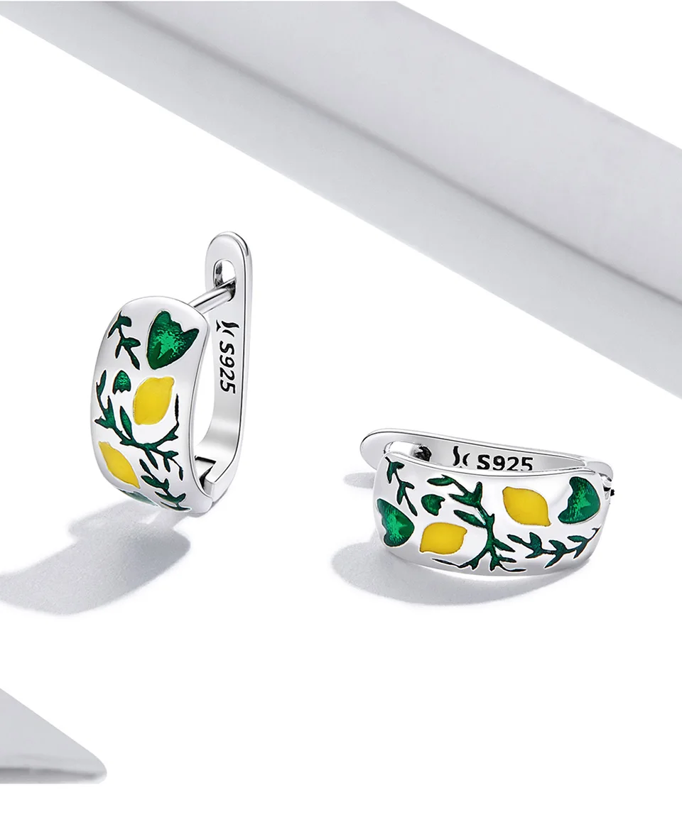 Номер СертификатаWOSTU 925 Sterling Silver Lemon & leaf Hoop Earrings